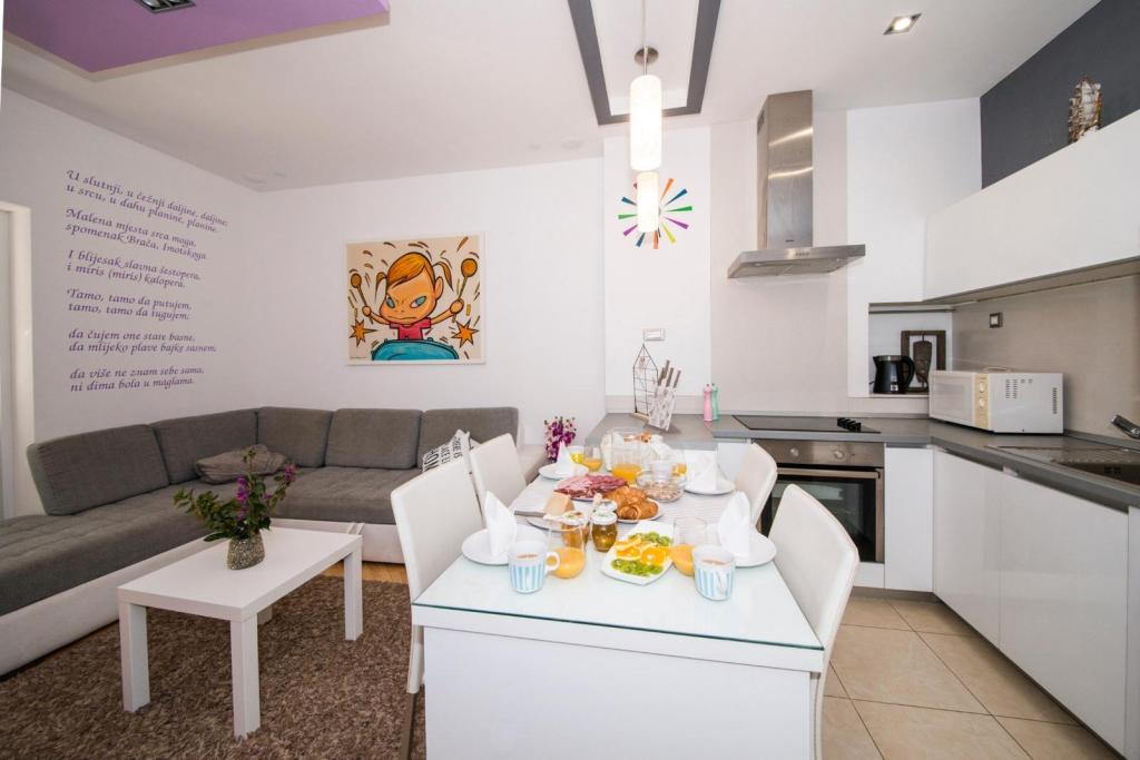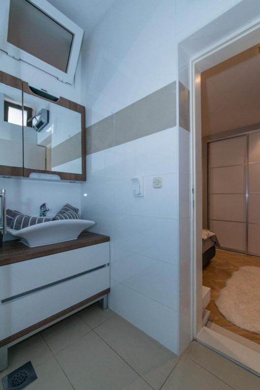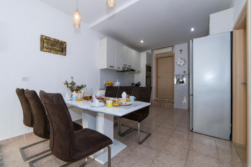 We offer accommodation in our house in Promajna on the Makarska coast. Promajna is about 6 km away from Makarska, and in the off-season, about 250 inhabitants live in the town. In the town itself there is a beautiful large beach with small pebbles and huge pine trees for those who like to sit in the shade, and to the west of the town there are several smaller, nicer, quieter beaches. Promajna is a great place for a quiet, family vacation, for enjoying the clear sea and wonderful night walks. Our house is about 300 meters from the sea, and the road you take down towards the sea ends exactly at the place where the main beach joins the small beaches to the west.