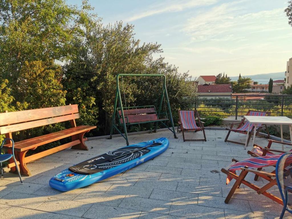 The villa offers accommodation in fully furnished apartments for 2-6 people. All apartments have a fully equipped kitchen, air conditioning, wifi, balcony with sea view, parking space in front of the house, free use of the swimming pool, barbecue, garden and terrace in the fenced yard. Pets are welcome for a fee. We are only a few minutes walk from the beautiful main beach surrounded by dense pine trees. Evenings are reserved for walks along the seaside promenade that stretches 3 km all the way to Baška Voda.