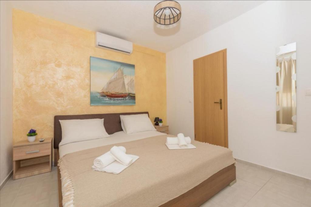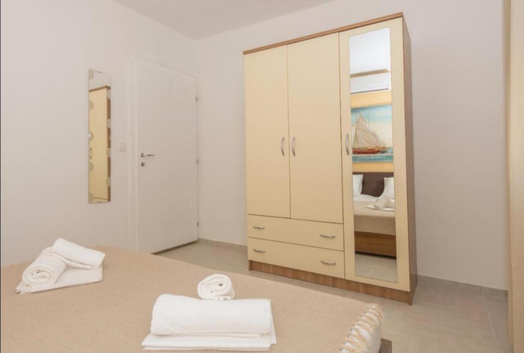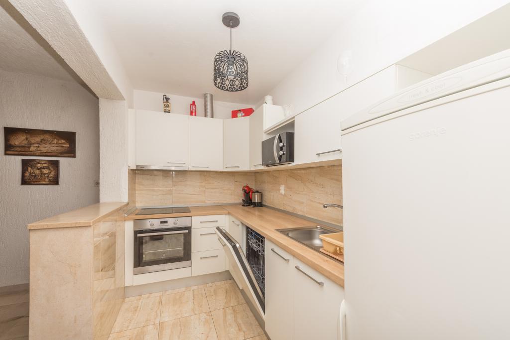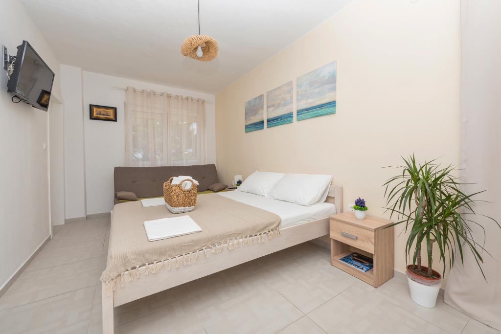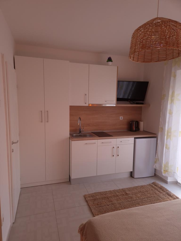 The apartments are located in Promajna, a beautiful small place ideal for vacation. The facility is located in the first row to the sea in the middle of a public beach that abounds in natural shade (pine). Within the facility we have a restaurant that offers a cheap daily menu and a wide range of a la carte dishes. The apartments are fully equipped and ready for your dream vacation.
