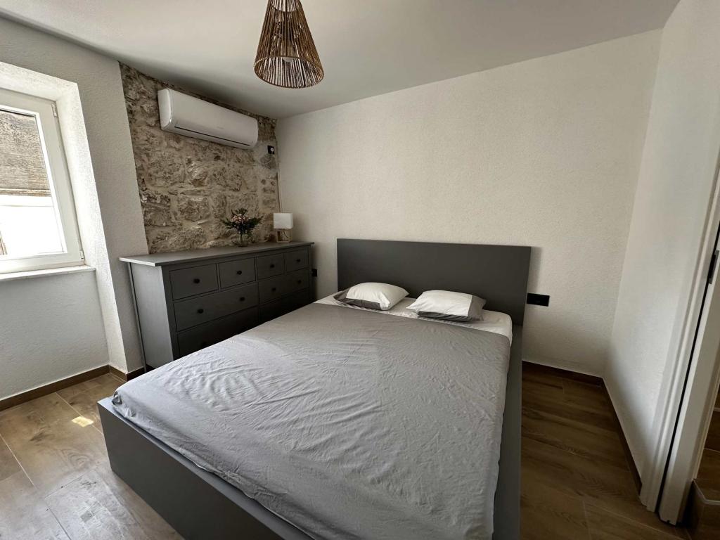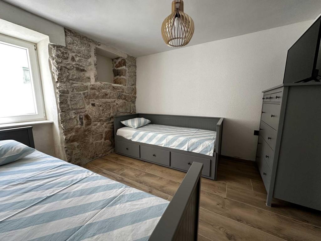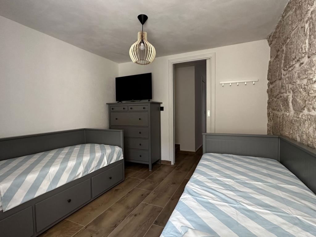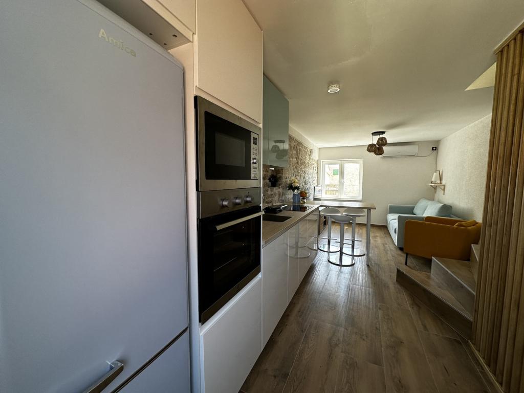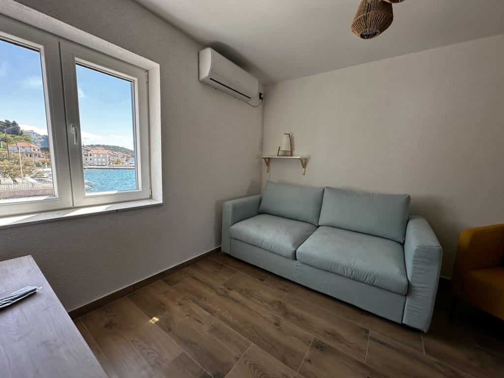 We had the unique opportunity to stay as first guest at this new renovated old townhouse. In the middle of tiny alleys 15 m air distance to the water, with a wonderful view at the village square. We stayed 14 days with three litte kids. 30 s to the water. We went every morning before breakfast for a refresh dive. The island is really small but unbelievable quiet. We stayed at high season. While the mainland was complete overfilled Lucca Prvic was quiet and moderat visited. On the opposite to the village there is a nice pine Forrest with ruff rocky water entrance. Highly recommend are swim shoes. Ivan was a great host. Whether he wasn’t on the island via WhatsApp he was around every time we needed him. This house is highly recommend. We’ll come back for sure