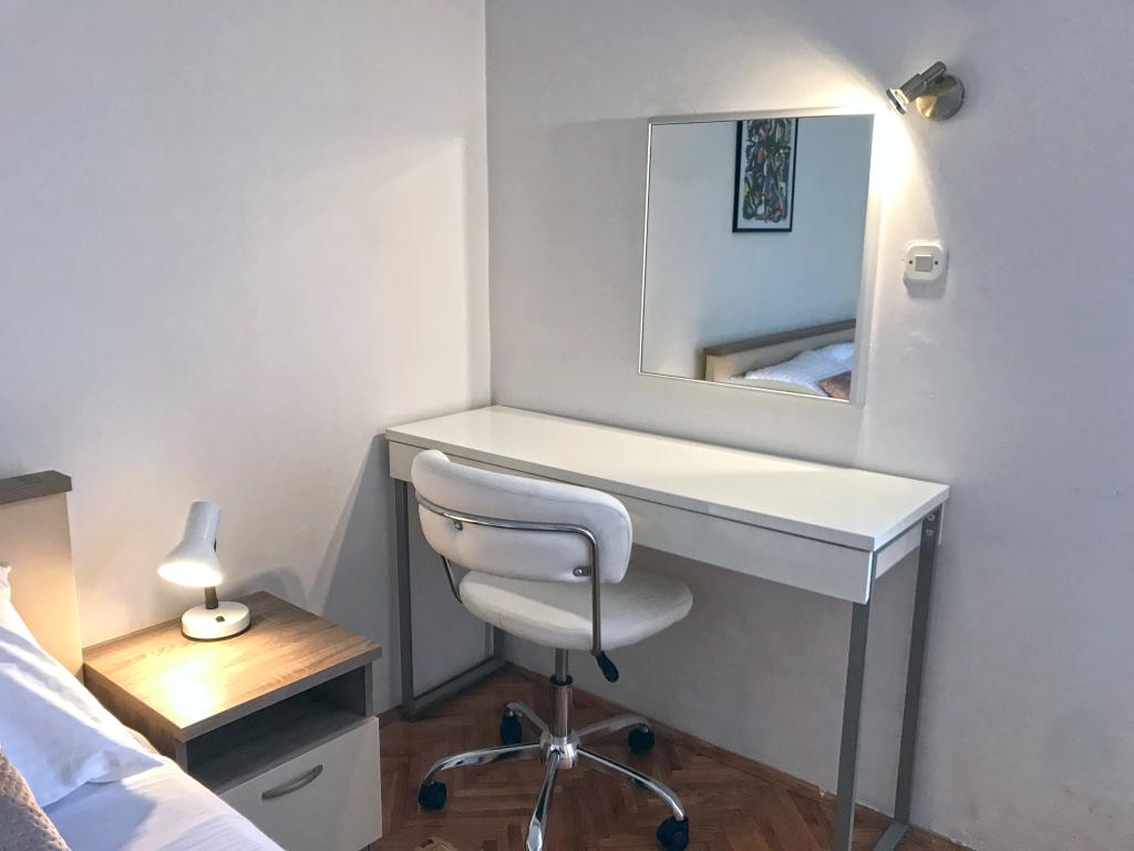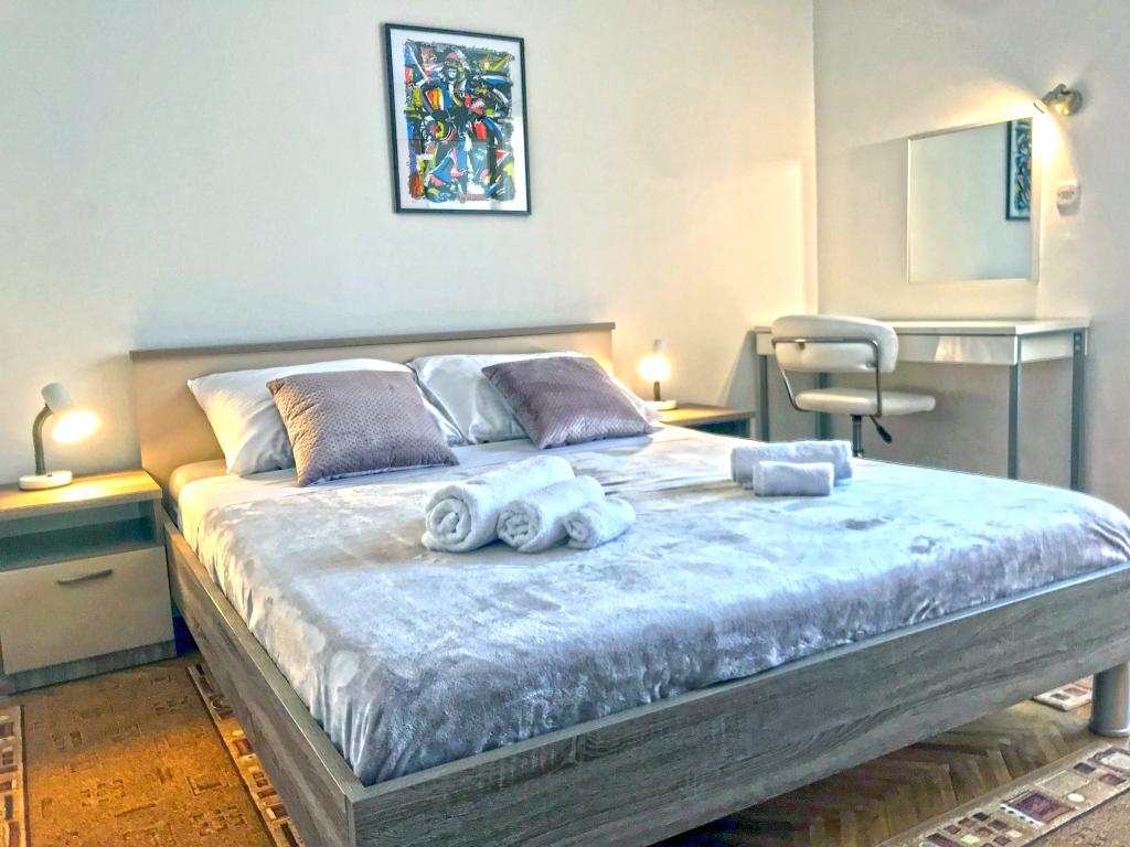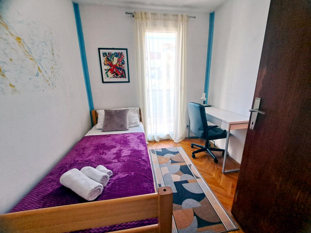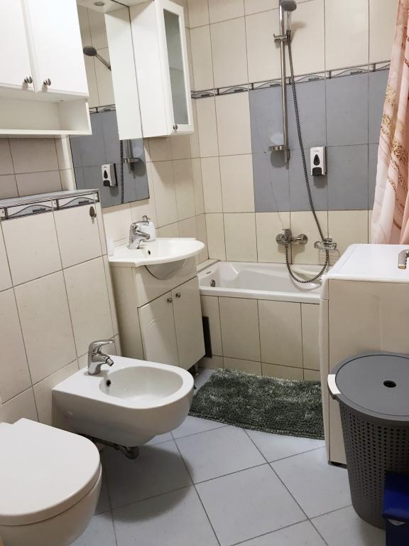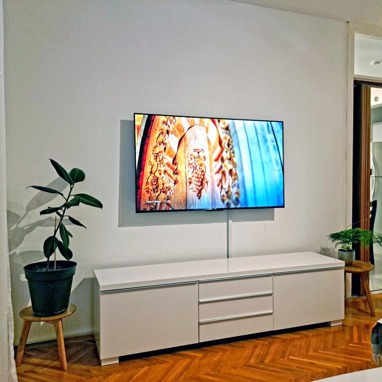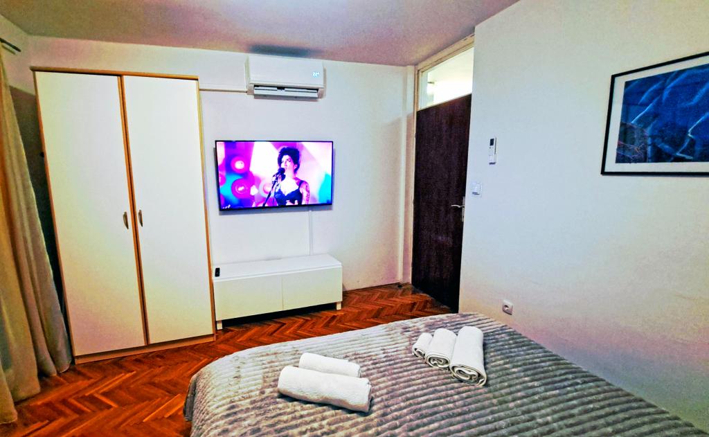 A comfortable, modern apartment in a quiet part of the center of Pula — an excellent choice for couples, families of up to 5 people or business travelers. The apartment has two bedrooms (double, air-conditioned and single), an air-conditioned living room with a work corner and a folding sofa that can be converted into a bed for two people if necessary. A fully equipped kitchen, dining room, bathroom with bathtub, additional toilet and a balcony with a view of the park are available. The apartment has three Smart TVs (50", 43" and 55") and fast optical internet, with the possibility of a wired connection. The city market and the old center are only a 5-minute walk away, and the sea is less than 2 km away. Parking is available in front of the building. Here you will find the ideal combination of comfort, modern equipment and a superb location for a carefree stay and exploring Pula.
