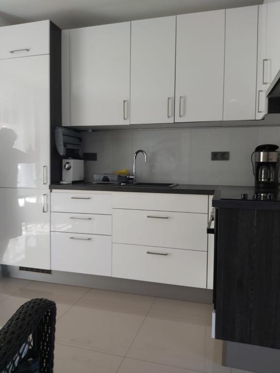 New and modernly equipped apartments in a quiet area, located third row to the sea; The facility is located 2 minutes walk to the center and 5 minutes walk to the beach. Restaurants and other services for guests are located right next to the beach. Sports activities can be practiced with the accompanying equipment located right next to the beach. And also children's equipment for fun and playing. Note. The beaches are illuminated at night with a bar where guests can enjoy and relax by the sea.