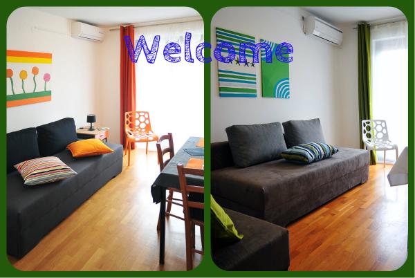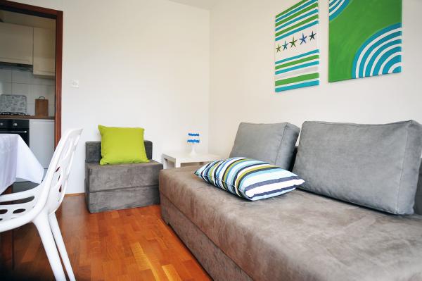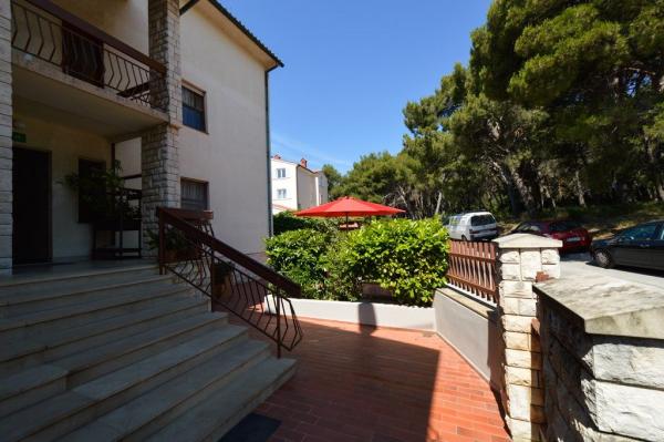 Excellent positioned and modernly equipped apartments are situated in a private house, only 150 meters from one of the most beautiful beaches in Pula. The beach is called Gortanova bay (on photo). In the garden you can use barbecue, sit and enjoy in scent of pine forest that is next to the house. In front of the house there are parking places. On the balconies of both apartments you can enjoy in your fresh prepared meals (grocery 200m) or you can go in restaurant near apartment. By the beach is beautiful promenade, jogging track and also beach bar with small park for children. All necessary is just 50-400m. Apartment (2 1) A is located on the ground floor (8 steps) and consists of a living room with sofa-bed, bedroom with double bed, kitchen, bathroom and balcony. Apartment (2 1) B is on the first floor and consists of a living room with sofa-bed and a small extra bed, bedroom with double bed, kitchen, bathroom and two balconies.