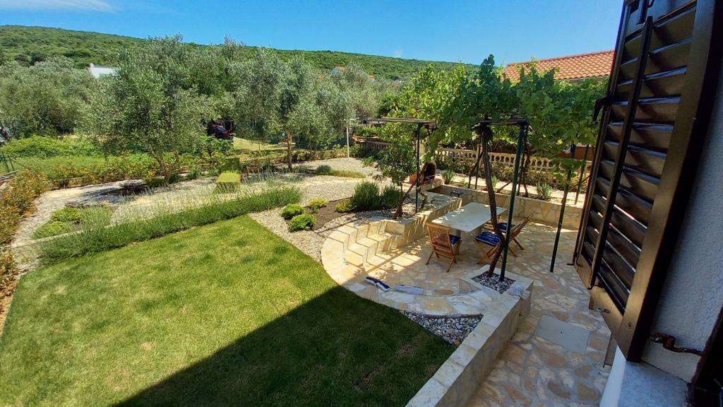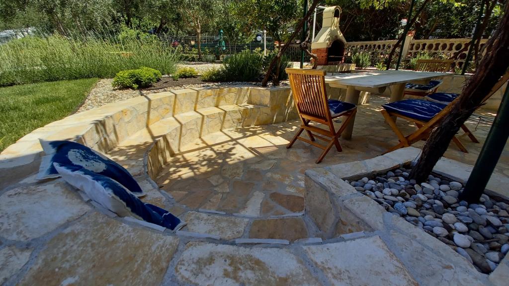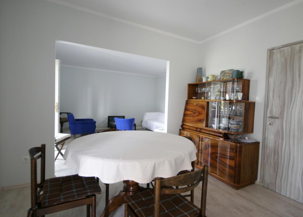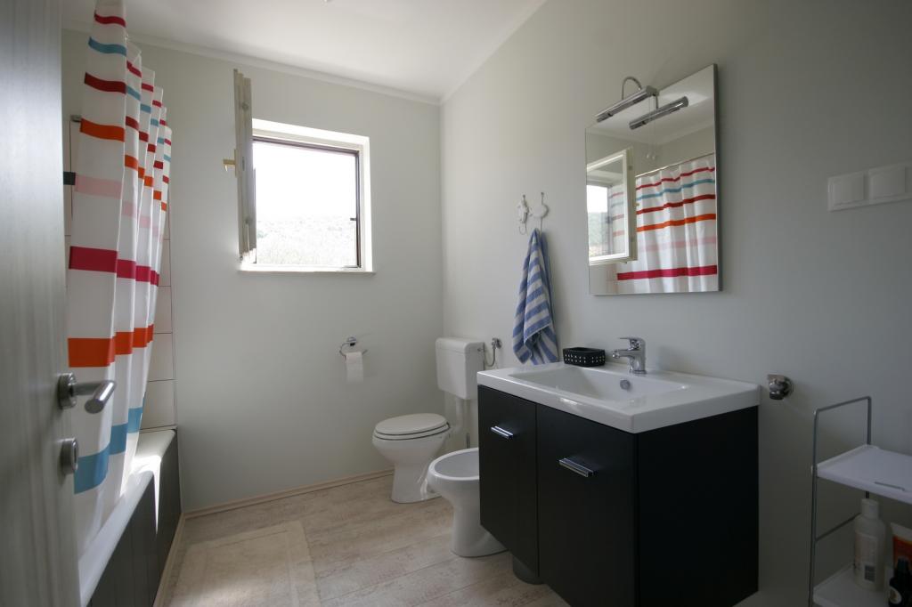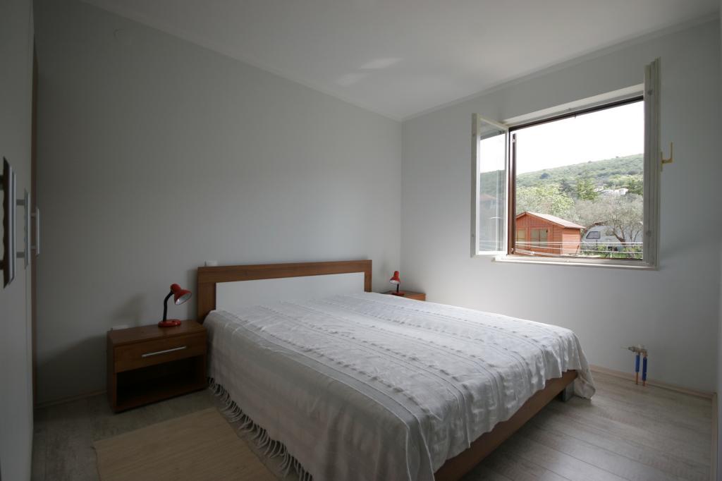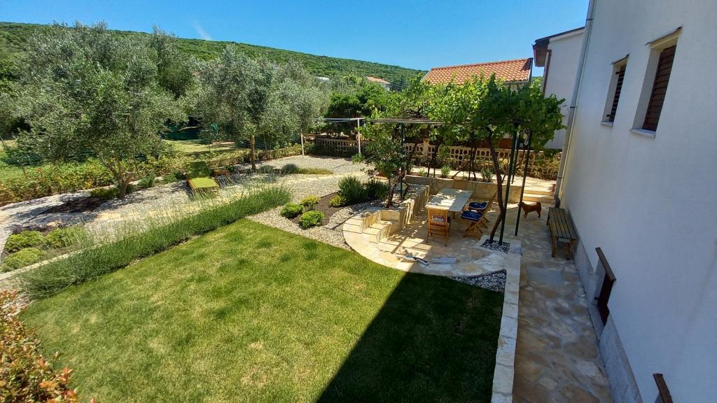 Newly renovated, spacious apartment of 100m2 is located on the first floor of a family house. It consists of 2 bedrooms, 2 bathrooms, kitchen with dining room and a spacious living room where it is possible to extend the sofa into an extra bed. From the kitchen and living room there is an exit to a large balcony-loggia. At the back of the house there is a newly renovated garden with barbecue and deck chairs and a solar shower. Near the apartment is a supermarket and the sea is about 500 m away from the center of Punat is 10 minutes walk.