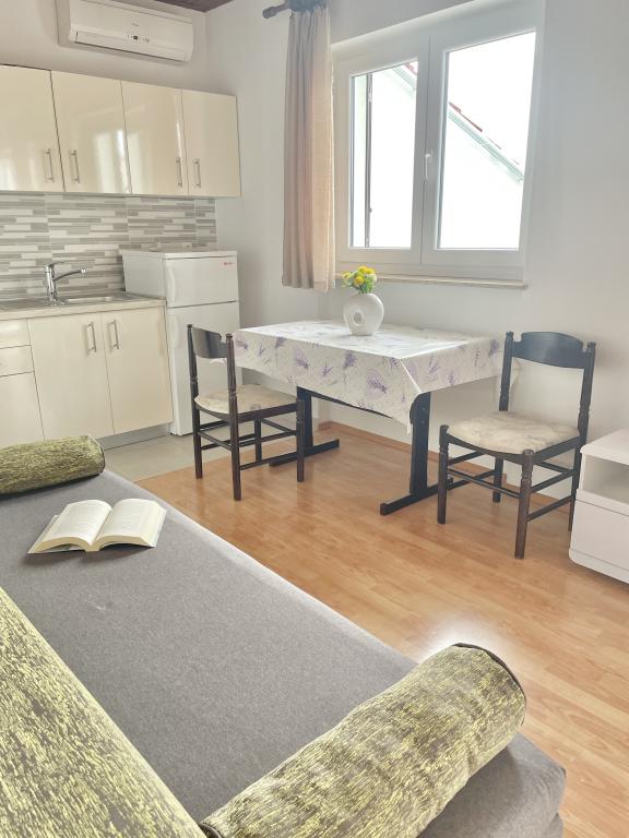 Here the description absolutely keeps what it promises. A very well-kept house with very nice landlords, the equipment is functional and there is plenty of space in the spacious apartment. What we particularly liked is the large roof terrace with the magnificent view of the sea. The landlords, Mrs. and Mr. Orlić are both very hospitable and helpful, without being intrusive. We found our 17 days vacation with the Orlić great and would have liked to have spent another week on it. And, because it was so nice ... we announced that we would be back next year.