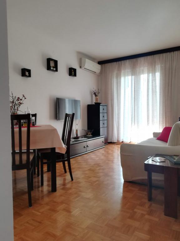 We spent 3 days with the lovely Mrs. Dragana with two families (4 adults and two children). We received 2 sets of keys and a nice compliment. Everything was in good condition, cutlery and other kitchen equipment was in abundance, including a coffee machine, pots and pans (of course scratched, like everywhere, because they are in good condition only for the first use by unaware tourists, so I recommend you bring your own). The air conditioner worked well. We also used the washing machine and Smart TV (not only local). Only the Wi-Fi sometimes had a weak signal. It was clean, there were plenty of towels and we slept great. You can eat on the balcony or outside. 8 minutes walk to the beach and 8 minutes walk to a larger shop. Contact before and after booking was quick and easy. I highly recommend it!