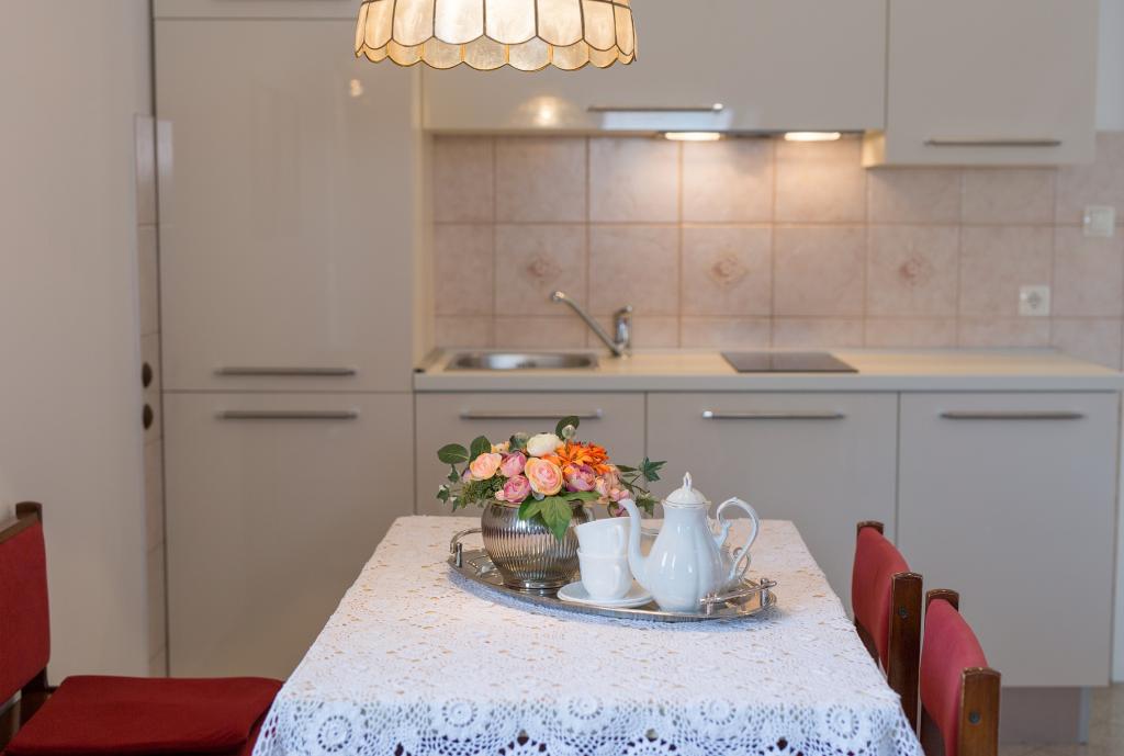 The apartments are located in a quiet part of Punat, about a 5-minute walk from the beach with crystal clear sea, showers, a rich sports and recreational offer (water park, speedboat with parachute, beach volleyball...) and other various facilities for all ages. . The town center (bank, post office, pharmacy, restaurants...) is about a 10-minute walk away. The following activities are available to guests: hiking and walking, cycling for which special paths have been built along the road on the island, adrenaline and extreme sports such as surfing and skiing on a wire, jet skiing, windsurfing, diving with supervision, visiting cultural or natural sites . The apartments are functionally equipped and provide a pleasant and peaceful stay. Free private parking is provided in front of the house.