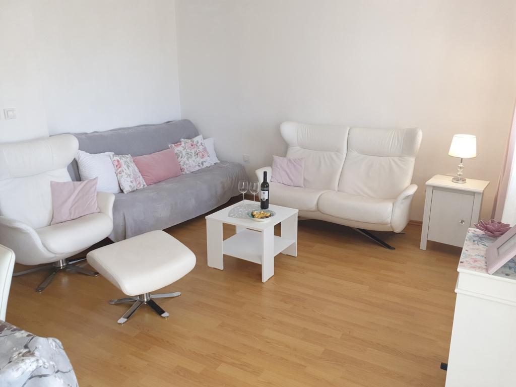 Modernly decorated apartment. Great location, just 1 to 2 minutes walk to the sandy beach. From the balcony there is a beautiful view of the sea and the old town. Everything is close to home. I recommend Apartment Mare to everyone for a great vacation! We will definitely come back next summer.
