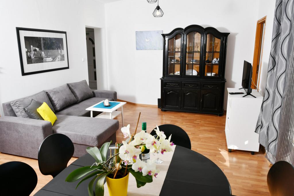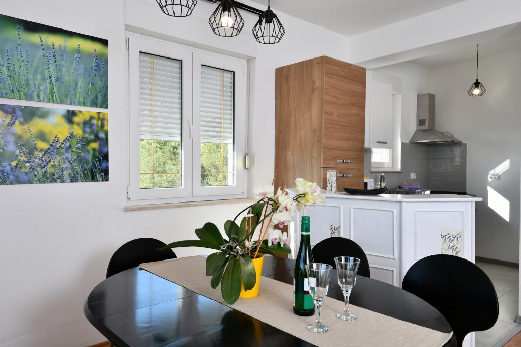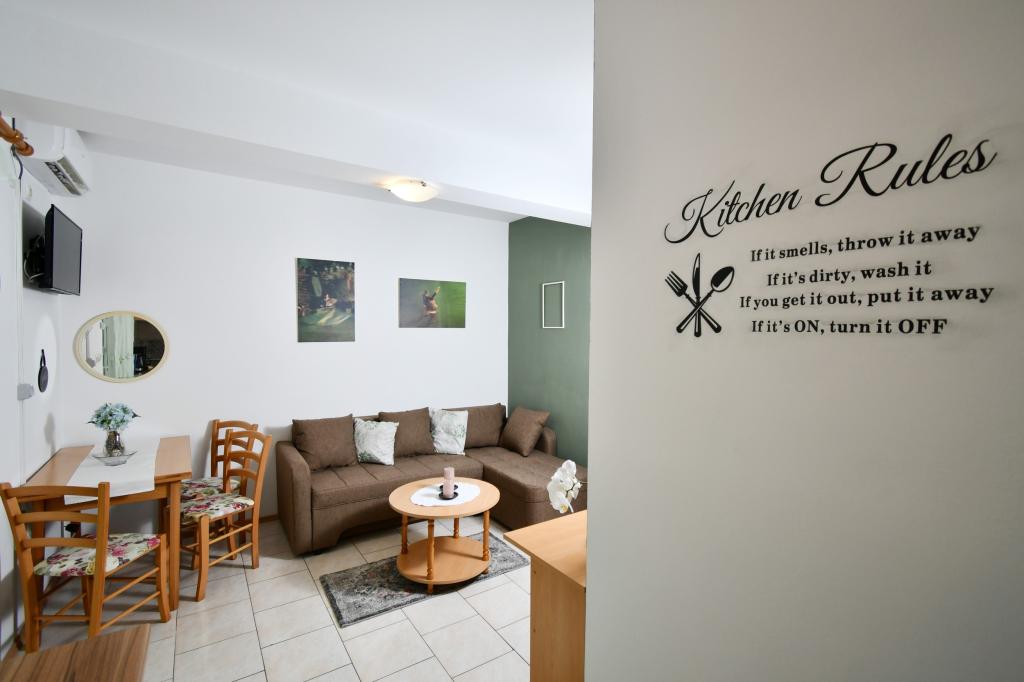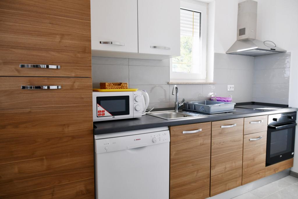 Completely and modernly equipped apartments in the quiet area of Banjol on the island of Rab. The facility is located a 5 minute walk from the beach, 15 minutes walk to the city center, own parking space, use of the grill, free internet.