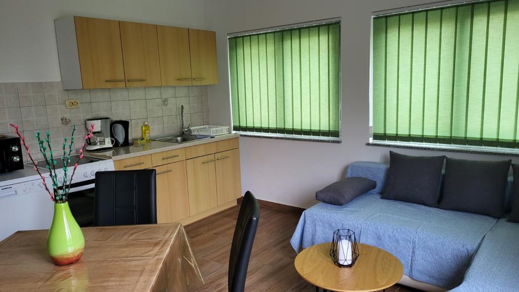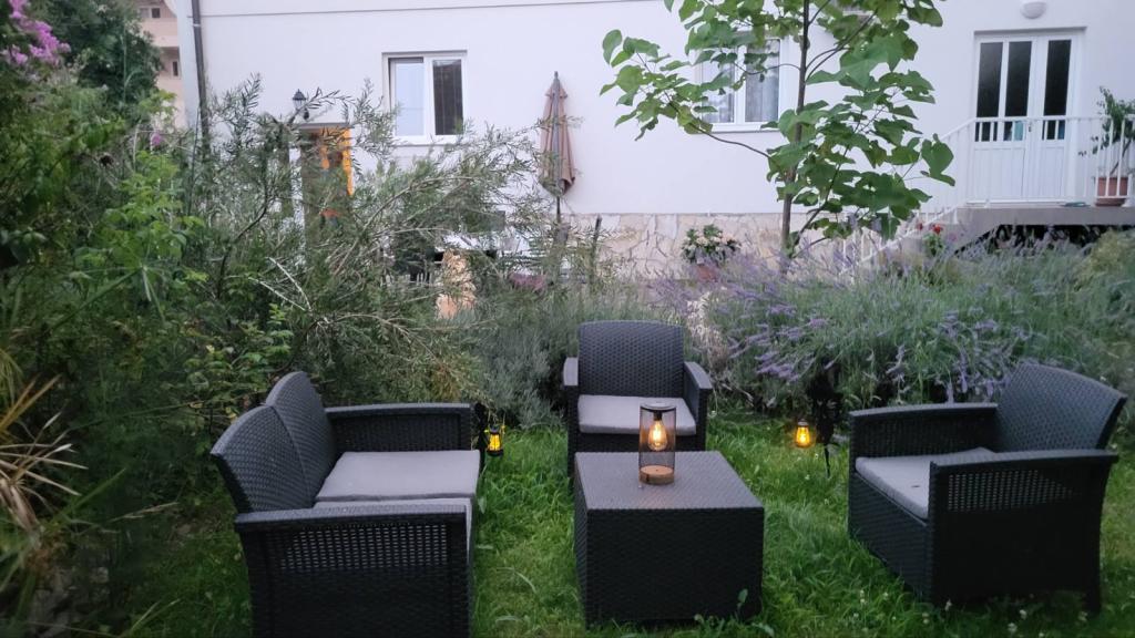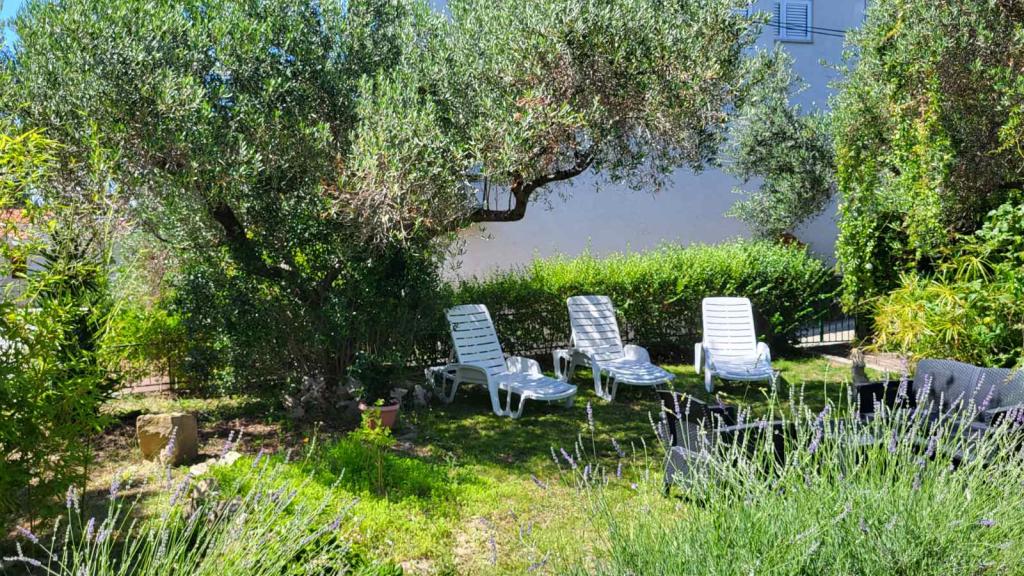 Apartments Padova 2 are located on a quiet part of the island near Padova II beach, surrounded by a garden and greenery of decorative plants. They are equipped with everything necessary for a pleasant and carefree vacation; dishwasher, washing machine, microwave, kettle, toaster, satellite programs, WIFI... The apartments are located on the ground floor, have a terrace and a garden suitable for relaxing in the shade of olive trees. There is a grill on the terrace, which is available to guests. The beach is 50 meters away, and the old town of Rab can be reached in 20 minutes along the beautiful sea promenade. There is a taxi boat in the immediate vicinity for those who like boat rides. Parking is next to the apartments and is free.