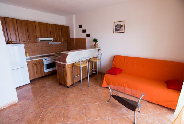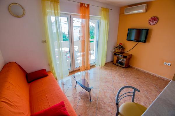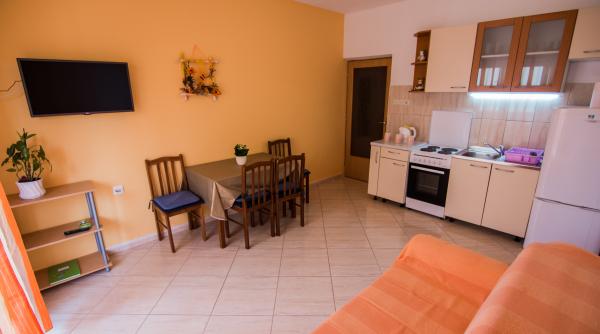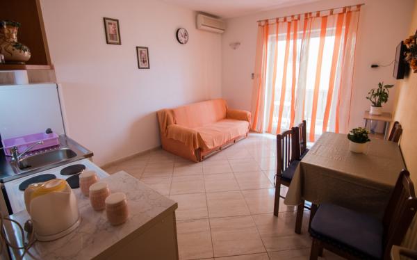 Apartments Španjol are located in a family house on the 1st floor with a beautiful view of the sea in a very quiet part of Banjol. They are fully equipped and suitable for accommodating 3 adults or two adults and two children. They are located very close to the sea and the beach (50 m), which is suitable for children. Next to the beach there is a children's playground with a slide, swings and other interesting devices. The center of the island of Rab (3 km) can be reached with a short walk along the promenade by the sea from the house. The garden located on the ground floor of the house is part of a private apartment and is not included in the apartment rental price, and is not intended for guests.