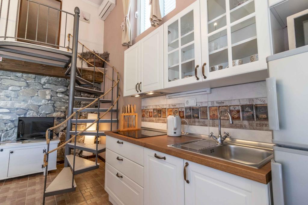 Vintage Apartments are located in Banjol on the island of Rab, only a 5-minute walk from the beach, 3 minutes from a small shop and a 5-minute drive to the supermarket. Each apartment is equipped with air conditioning, flat screen TV with satellite channels, refrigerator, microwave, dishwasher, hair dryer, .. All units in this accommodation include a private bathroom and bed linen. Each apartment has a terrace that can be used to relax with morning coffee or evening relaxation. Free parking and WiFi are provided for our guests. The property has a large garden with a trampoline, various playgrounds and a barbecue - perfect for families with children.