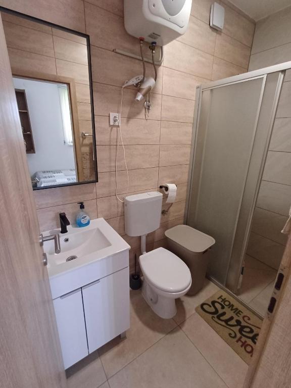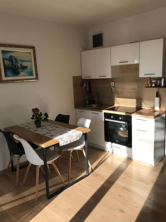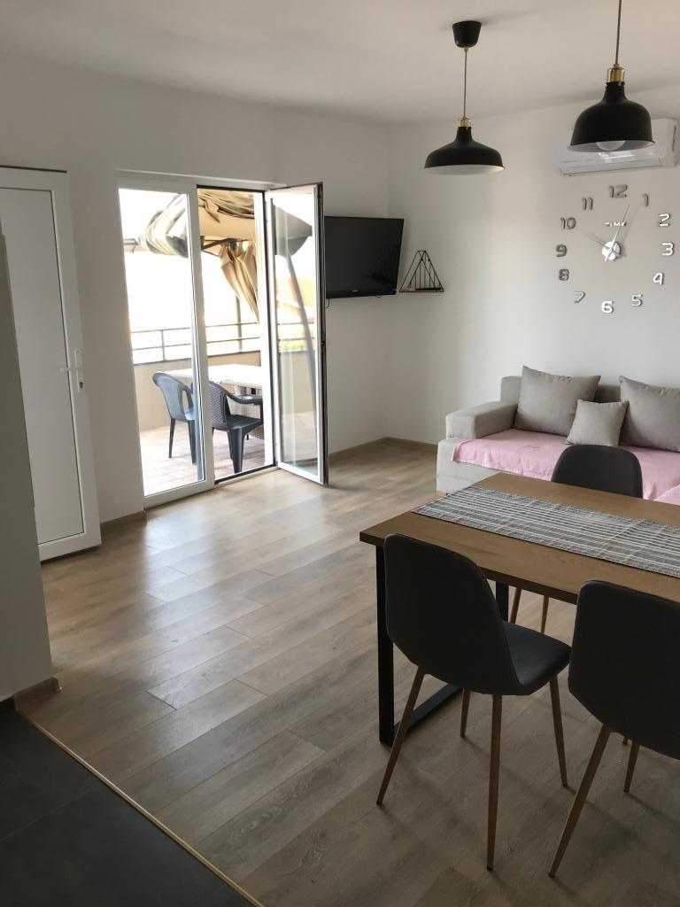 Completely renovated house with new furniture, located in Banjol along the main road, only 300 meters from the center of Rab. Apartments Vjeko consist of: Studio Apartment 1 and Apartment 2, which are located on the ground floor, and Deluxe Apartment 3, which occupies the entire first floor. All apartments have separate entrances, free Wi-Fi and secured parking spaces in the yard. Distances: City center: 300 m Shop and cafe: 50 m Main beach: 400 m You can visit all the facilities on foot within 5 to 10 minutes, which makes this location extremely practical and pleasant for a stay