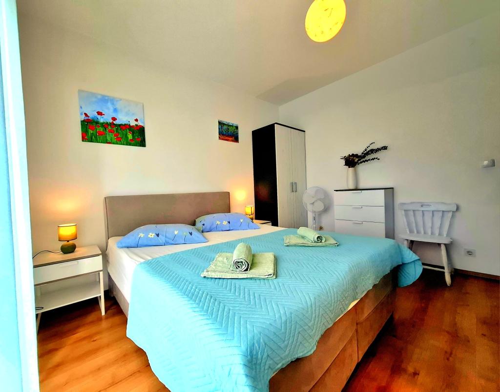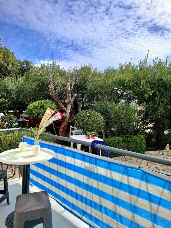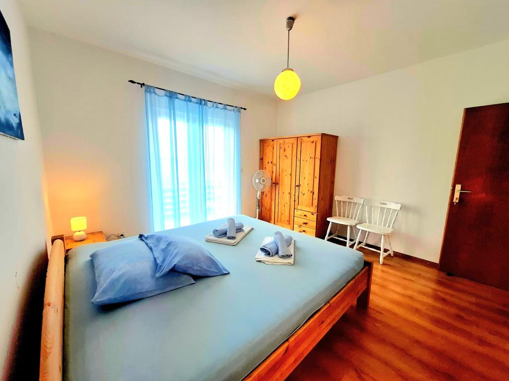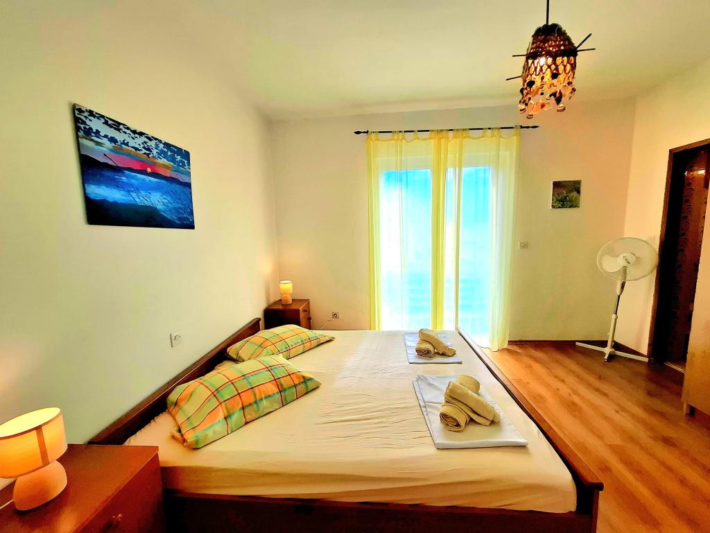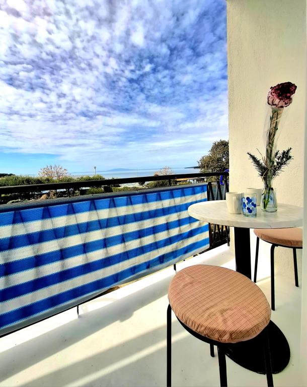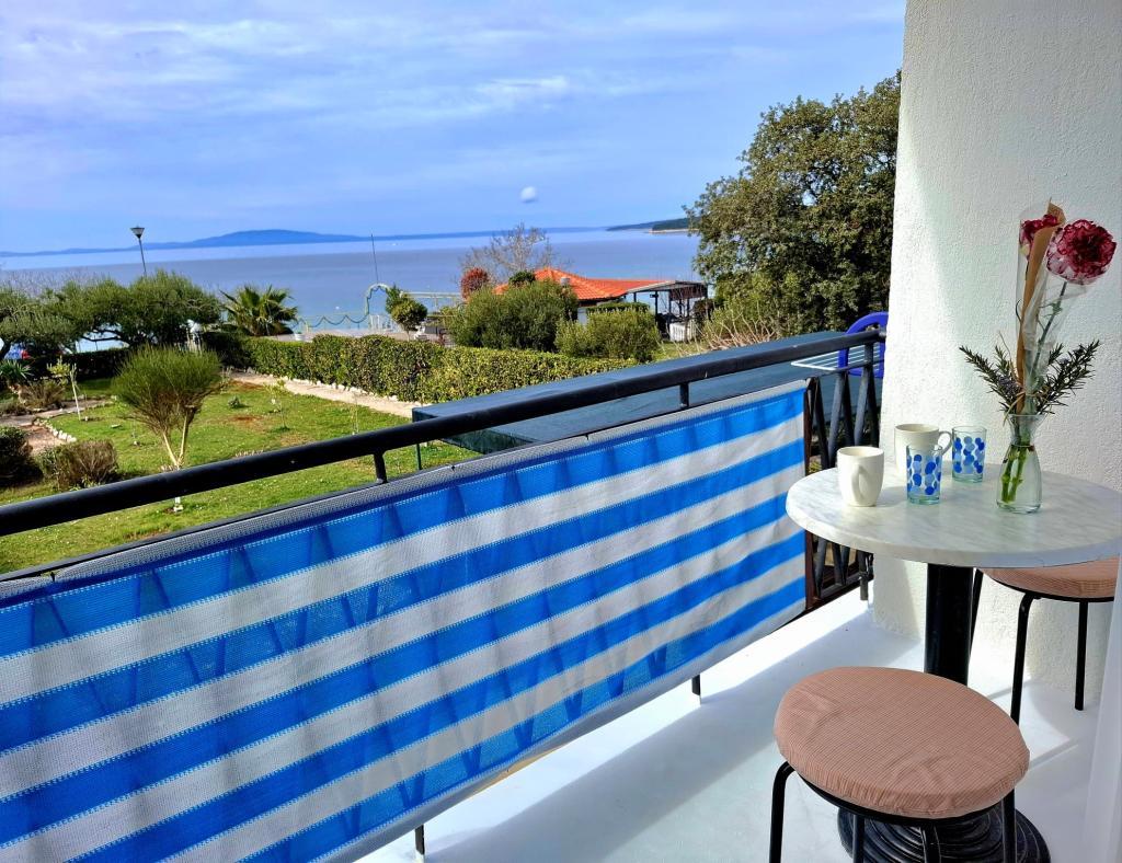 "Are you looking for a vacation like it used to be - with the sound of the waves instead of the noise of the TV? Our accommodation in the first row to the sea in Banjol offers you exactly that: a return to nature and true peace. We are located directly on the Lungo Mare promenade, a 20-minute easy walk from the town of Rab. Instead of air conditioning, we offer you the freshness of the sea air, and instead of a screen, the most beautiful view of the bay from your private balcony. What do we offer? Perfect location: First row to the sea, right next to the walking path or morning jogging. Enjoy the simplicity, the smell of salt and the proximity of the old town." Vacation like in the past: No TV and artificial cooling: floor fan and sea air But still a good Internet connection; free WIFI The GREEN ROOM and BLUE ROOM have sea view Shared well-equipped corner for self-preparation of breakfast: refrigerator, coffee maker, kettle, toaster, microwave, glasses, dishes and cutlery.