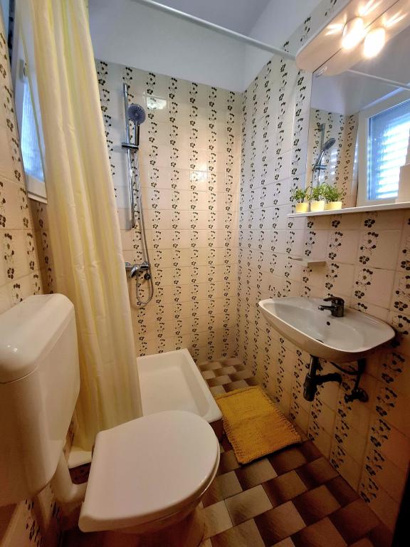 We offer comfortable and airy rooms right on the sea, ideal for travelers looking for affordable accommodation (low-cost) in an excellent location. Each room has its own bathroom and balcony, comfortable beds and a floor fan for a more comfortable stay. The Yellow Room has space for a baby bed (free of charge) and/or an extra bed (for a supplement) and can therefore be a family room. Guests have free parking, a large terrace and a well-equipped common corner for preparing breakfast in the spacious hall. (There is no kitchen). A special asset is our garden in the shade of olive trees with deck chairs and tables - the perfect place to relax with fast Wi-Fi available to all guests. Without TV and without air conditioning, the focus is on an authentic summer holiday. We are located steps from the beaches, promenade and beach bars, which makes us the perfect base for an active holiday at an affordable price. Only 15 minutes walk separates us from the town of Rab.