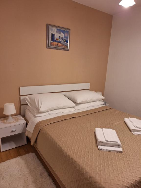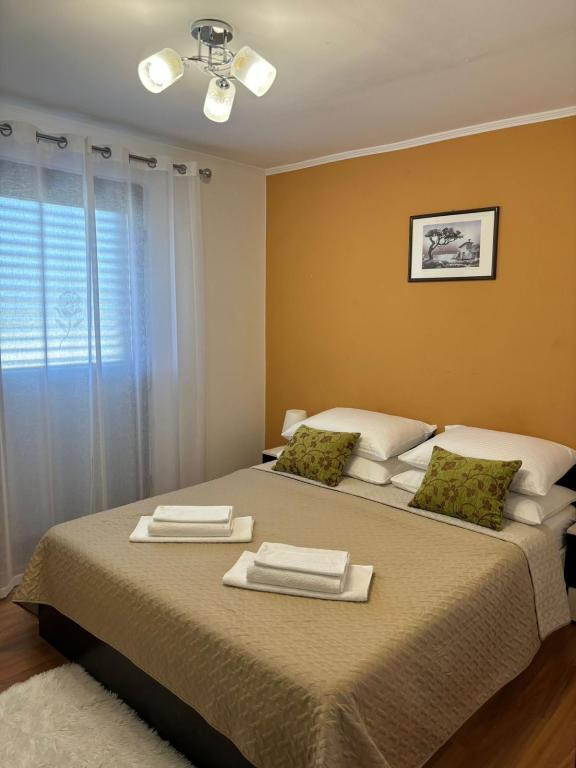 I rent 3-room apartments of 55 m2 on the 1st floor of the house and the ground floor of the house. The apartments are fully equipped and contain: Living room and dining room with TV with satellite receiver and air conditioning. Two bedrooms. Each room with 1 double bed (160 cm, length 200 cm), wardrobe and access to the terrace. Kitchen (fridge, 4 hotplates, dishwasher, kettle, electric coffee maker, toaster, microwave) Bathroom with toilet, shower and sink. Large terrace of 35m2 with sea view, lounge furniture and dining table. Pets are not allowed. For shared use: plot of 400 m2 (fenced). Terrace, garden furniture, barbecue. In the house: internet access, washing machine (for shared use, for a surcharge). Parking next to the house on the plot. The apartment is located in a dead end street 800m from the center of Rab, 5 km from the center of Kampor, 15 km from the center of Lopar, 800 m from the sea, 800 m from the beach, 100m from the shop.