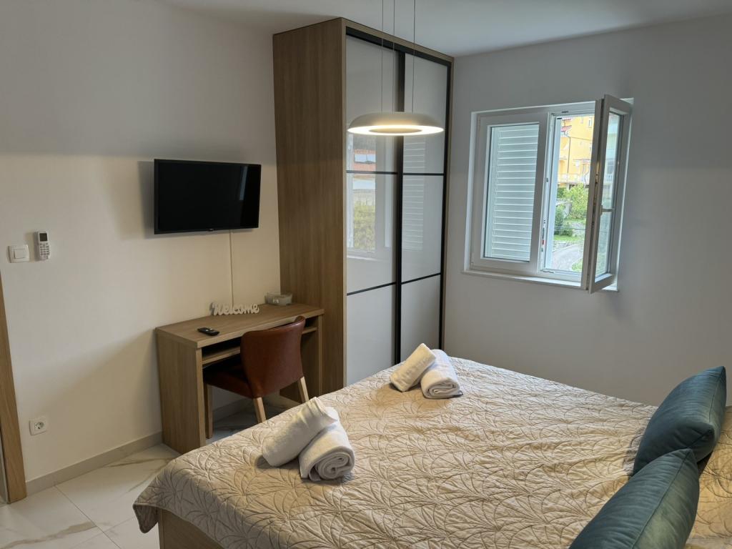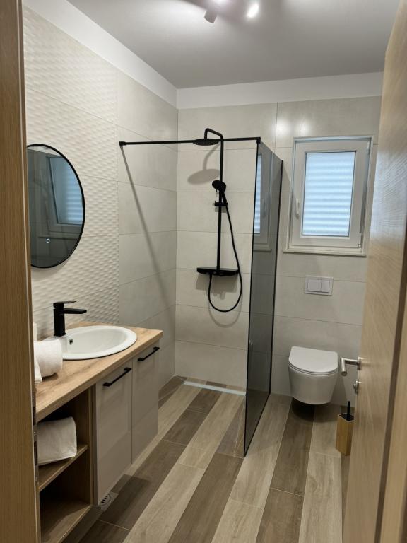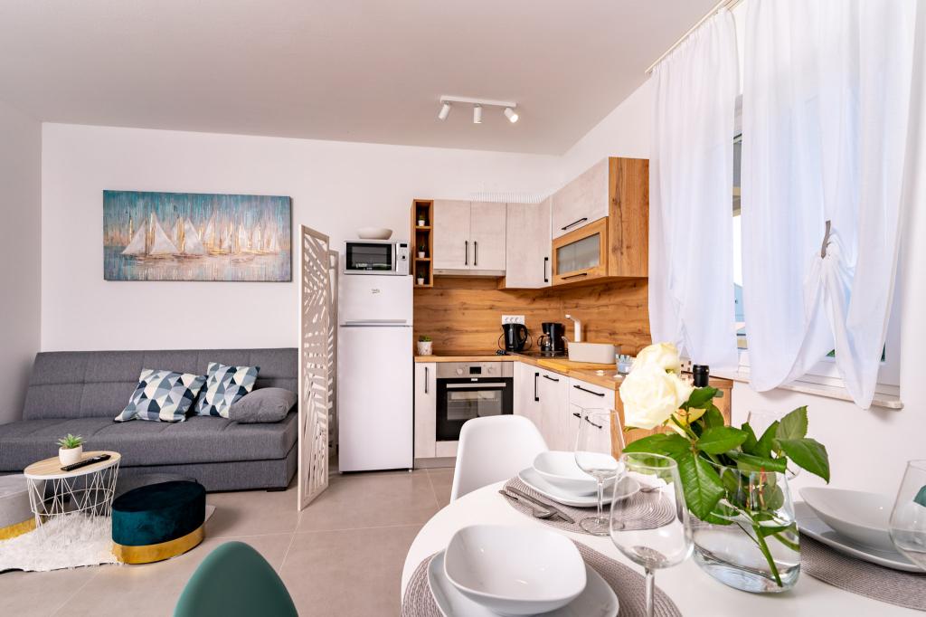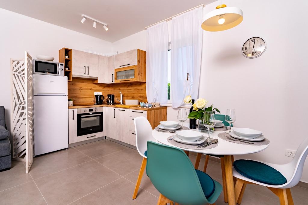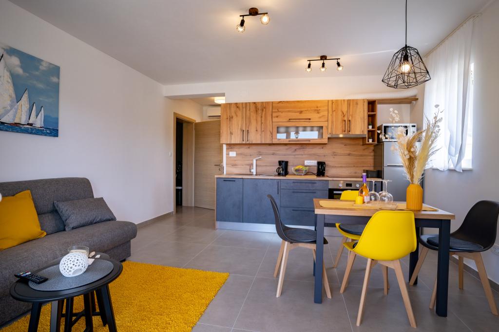 Fully and modernly furnished apartments in a quiet part of the island of Rab. The apartments are located a 5-minute walk from the beach of Grat and a 10-minute walk from the old center of Grat, supermarkets are also 200 meters from the building. There is a large free parking lot and children's playground in front of the building.