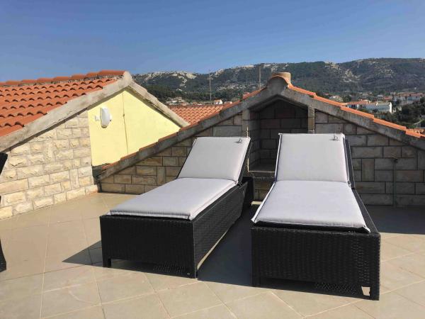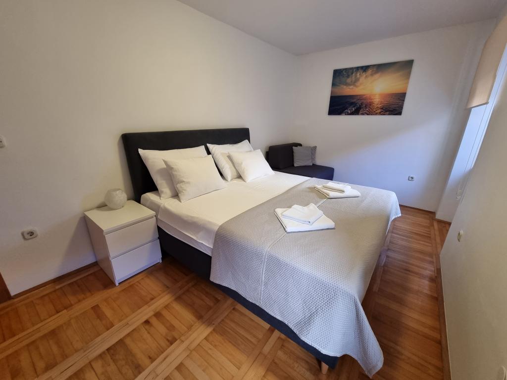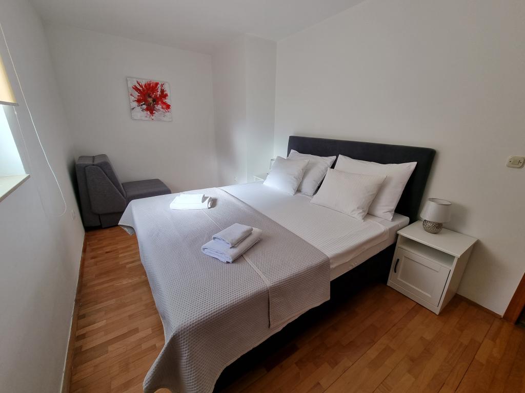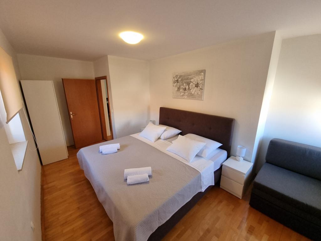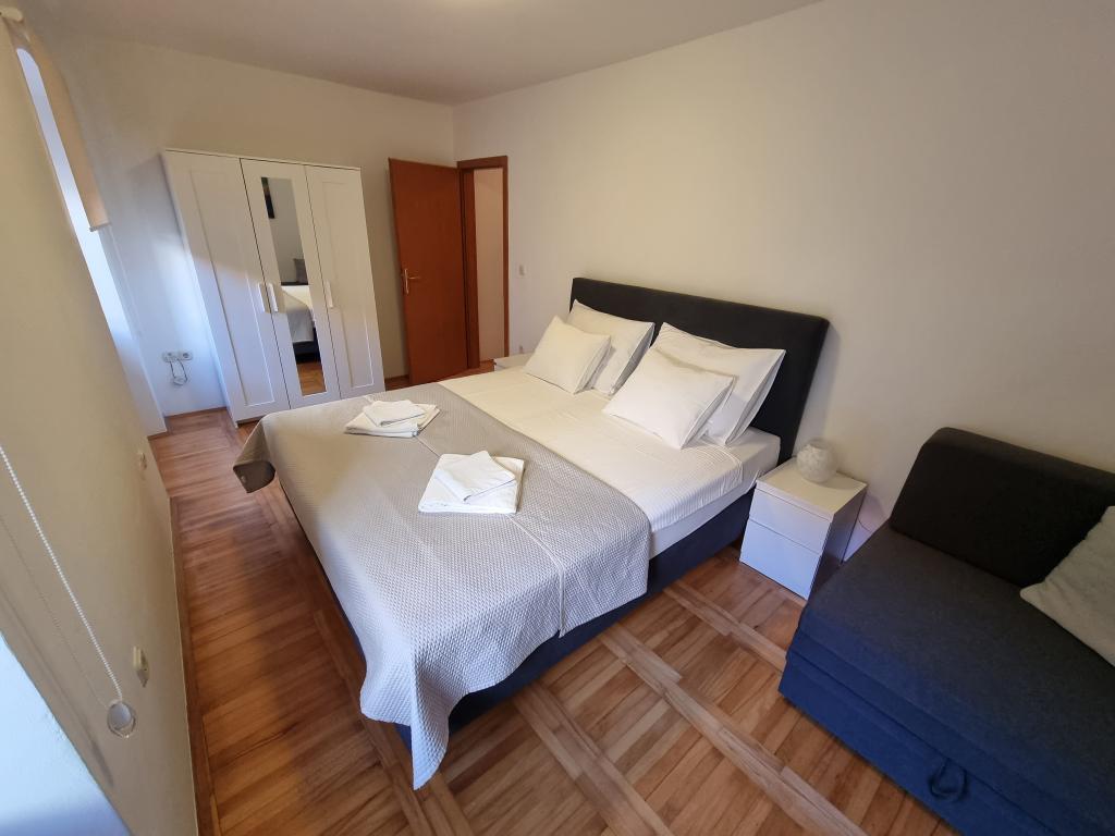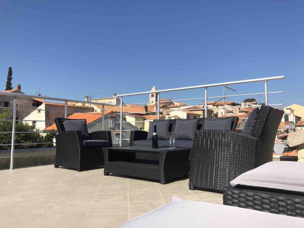 Experience an unforgettable summer vacation in the heart of the city of Rab on the island of Rab in our comfortable apartments located in the peaceful surroundings of the old city walls. You will not miss the excitement when you admire the beautiful panoramic view from the roof terrace of the larger apartment, where you will enjoy incredible views of the four famous bell towers of the city. Do not miss the opportunity to enjoy the proximity of the city beach, just a 2-minute walk from the apartment, or explore the streets and shops on the main street, just 30 meters from the property. And if you want to try local food, the restaurant is only 10 meters away from the apartment! With free parking for all guests in the city parking lot, which is located next to the waterfront just a few minutes' walk from the apartment, you won't have to worry about anything. Book now and experience an unforgettable summer vacation in the heart of the town of Rab on the island of Rab!