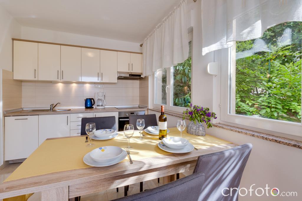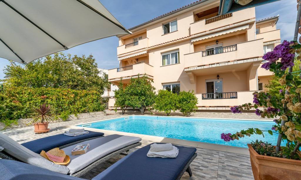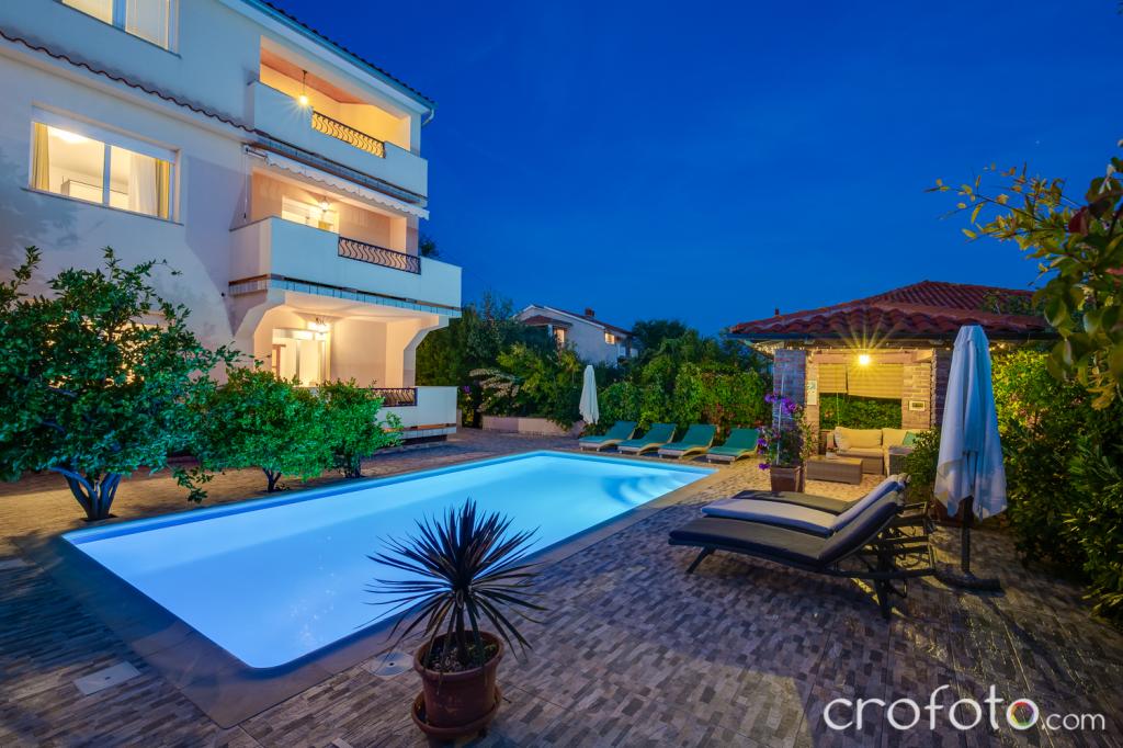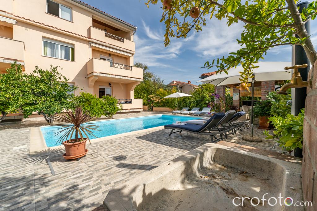 The house APARTMENTS JURIĆ has an excellent location, close to the center and the most eminent restaurants, close to the sea, close to the park. What really wins, far from the crowds, in a quiet location, with its own swimming pool and garden with a separate gazebo with a fireplace and a large table, which we put at the use of our dear guests. Pleasantly designed and furnished area around the pool, with comfortable seating in the shade of a cozy gazebo, comfortable deck chairs, surrounded by tall greenery. In the garden, olive trees, Mediterranean herbs, ornamental plants and flowers give a special atmosphere. The atmosphere is very pleasant, suitable for a quiet holiday and relaxation.