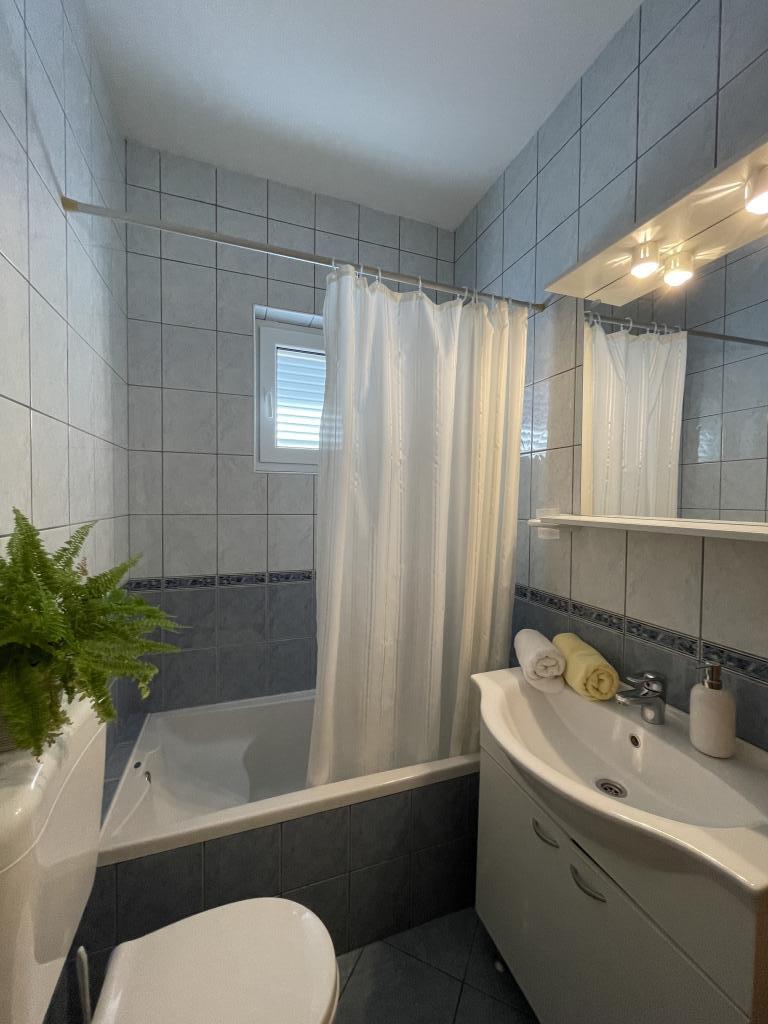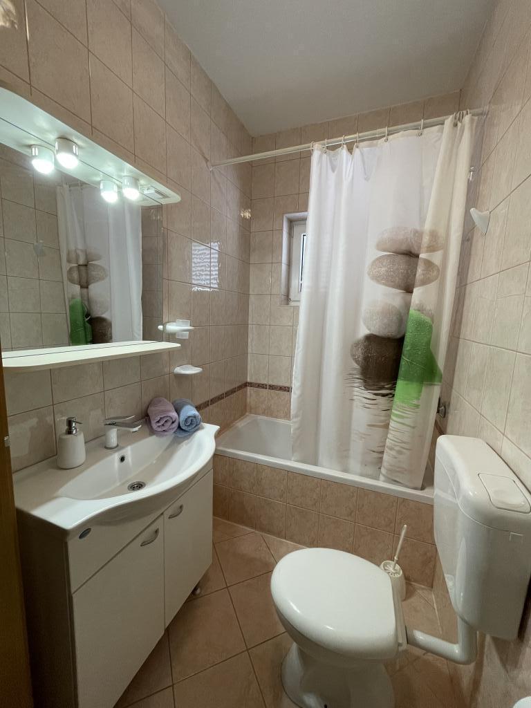 The apartments are newly built, in a quiet part of Palit. On the coast itself must be the first row. The facility is located 10 minutes to the center and 5 minutes walk to the beach. Restaurants are 10 meters to 200 meters away. Shops are 500 meters away. The apartments are 50m2, of which 25m2 dining room with kitchen and sofa that can sleep a child up to 12 years and which is charged extra per person. Solar hot water heating. Please contact us exclusively by e-mail!