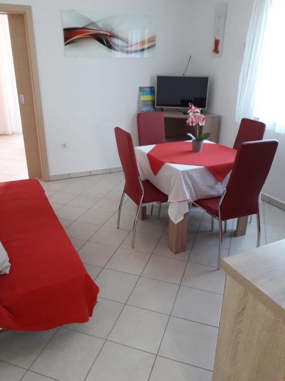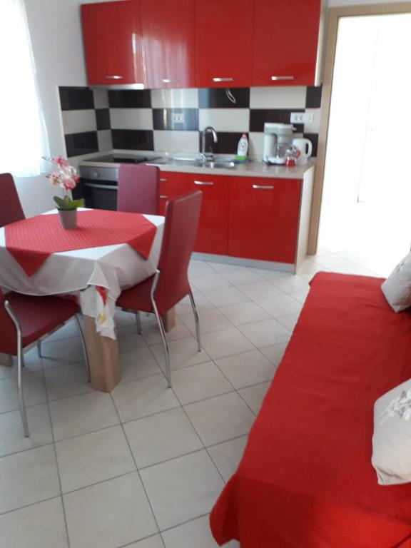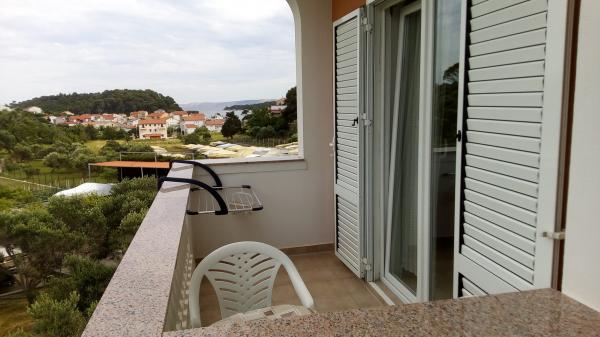We stayed in a ground floor apartment with one bedroom, the apartment is neat, the terrace is shaded all day with a view of the olive grove. A pleasant apartment, we didn't need air conditioning. The hosts were friendly and approachable, we were welcomed with a homemade Rab cake and since I love figs, my aunt picked them for me. I recommend