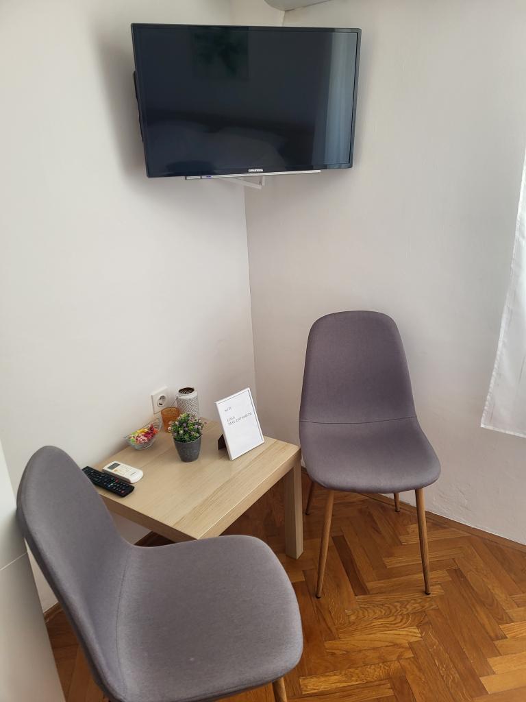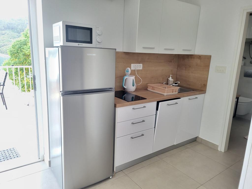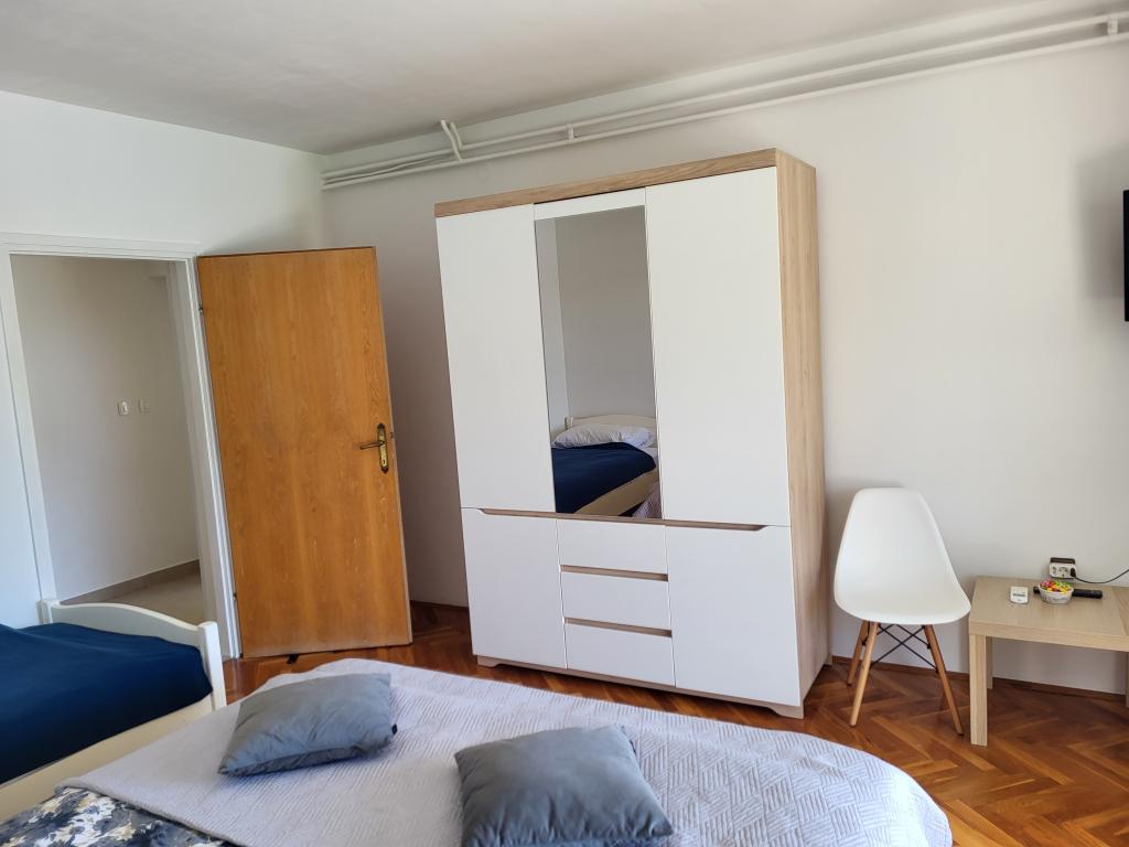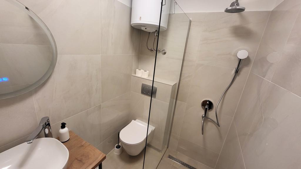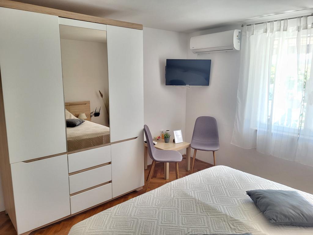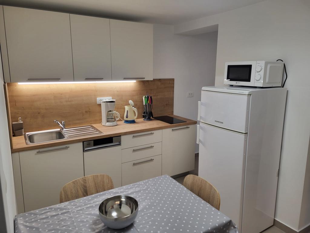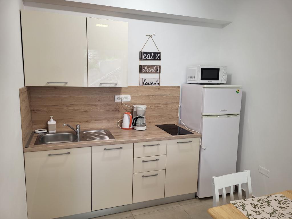 Very quiet and comfortable accommodation. The owner is a very pleasant and helpful lady. The apartment is clean, nicely furnished and fully equipped. It is a short walk to the beach, so you can go straight in your swimsuit. The shop is about 5-10 minutes walk, right below the apartment there are two restaurants, one at local prices, the other more luxurious. Parking is a bit more complicated, but no problem. We would be happy to come back here again.