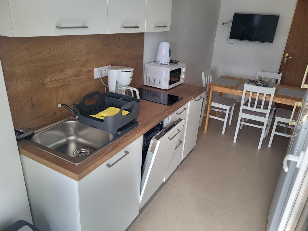 Beautiful studio, in a good location, excellently equipped. Ideal for a family of three. The first beach is already 200m away, offering a wide variety of activities on the water. The owner Lola is very kind and available for everything you need for a pleasant stay. For every recommendation!