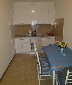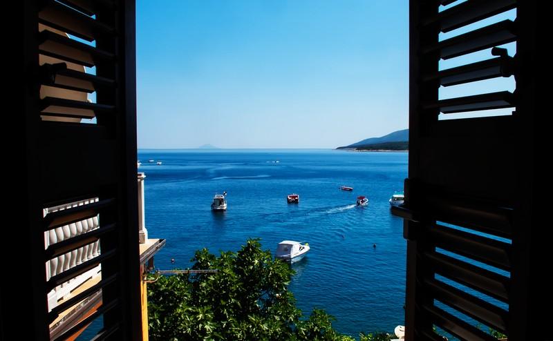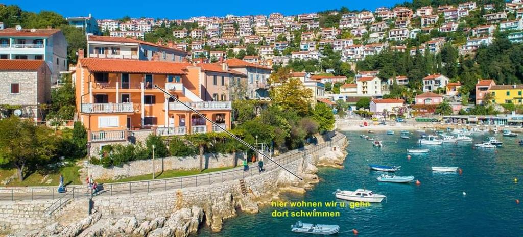 Our house is located in the center of Rabac right by the sea with a fantastic view of the entire bay, the island of Cres and Unije. 100 m left and 200 m right from the house are the beaches, behind the house are restaurants. Shop, post office, pharmacy and doctor are 200m from the house. Each apartment has a sea view and its own terrace (apartment 1 and 2). Apartments 3 and 4 have a shared balcony.
