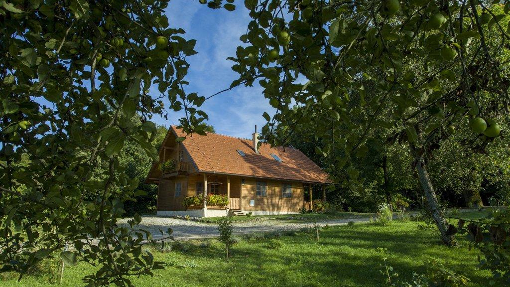 Jela is one of two wooden houses on the estate Jelov Klanac on the very edge of the Plitvice Lakes National Park. Like the endless forest and greenery in which it is located, Jela thinks green. At night, when the lights are turned off, you can observe the sky and the stars in peace and quiet. In summer, fireflies light up the property and the scent of medicinal herbs wafts through, while in winter, the crackling of wood from the fireplace and the view of the surrounding snow-covered hills offer an authentic experience. Jela offers accommodation in three apartments equipped with handmade wooden furniture.
