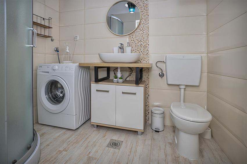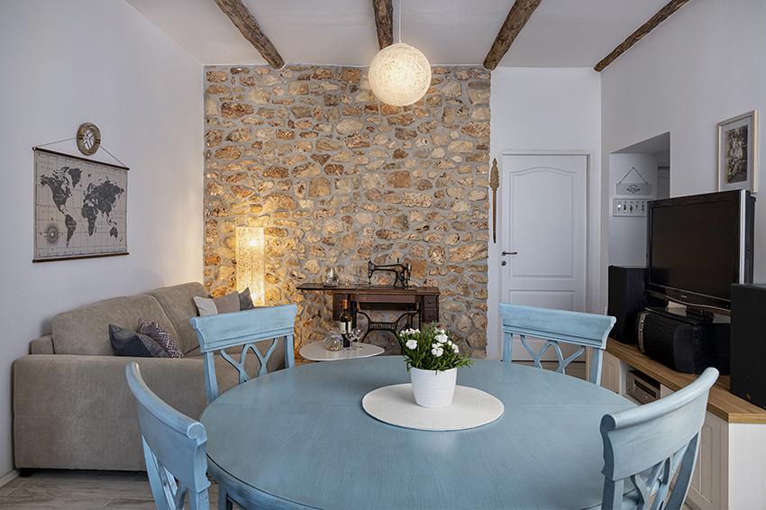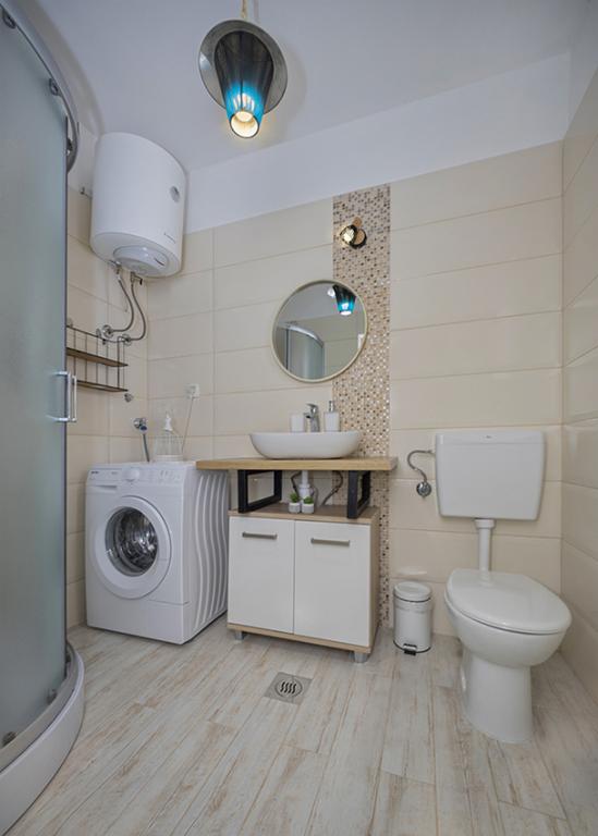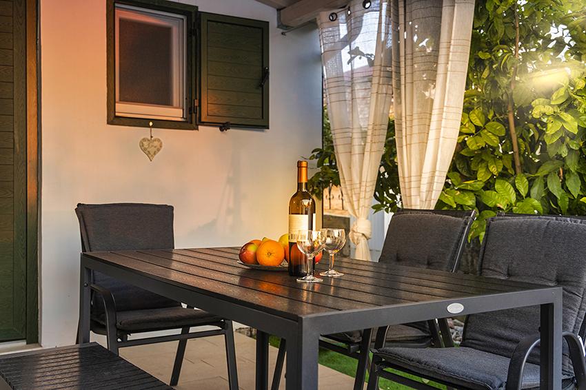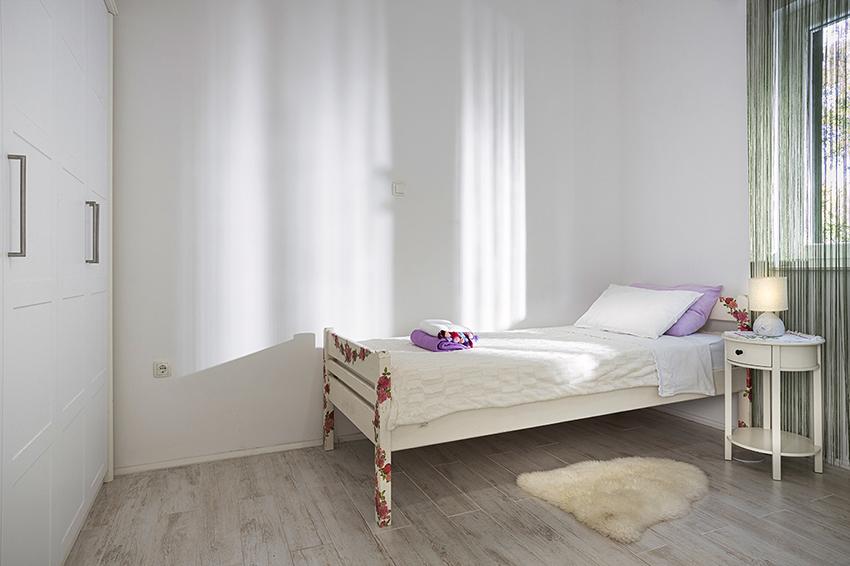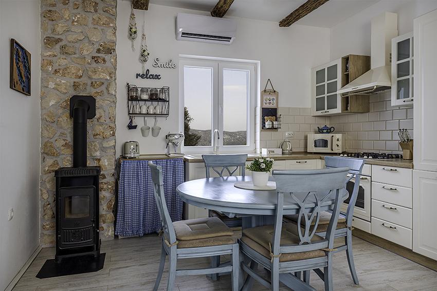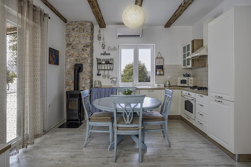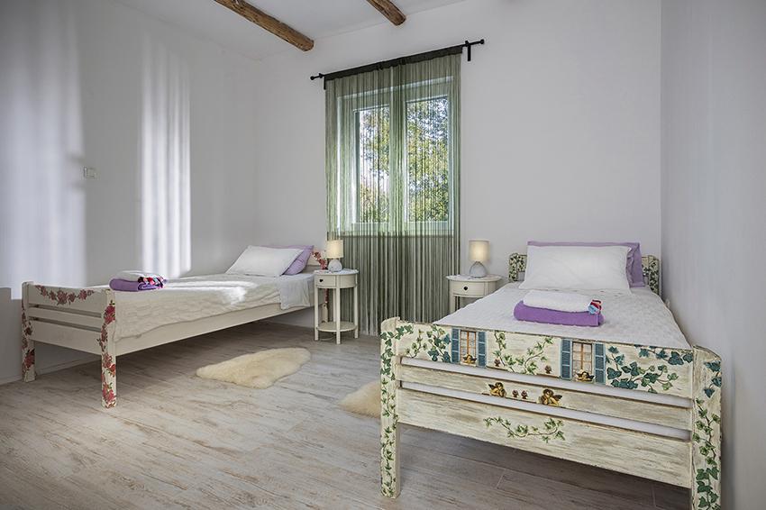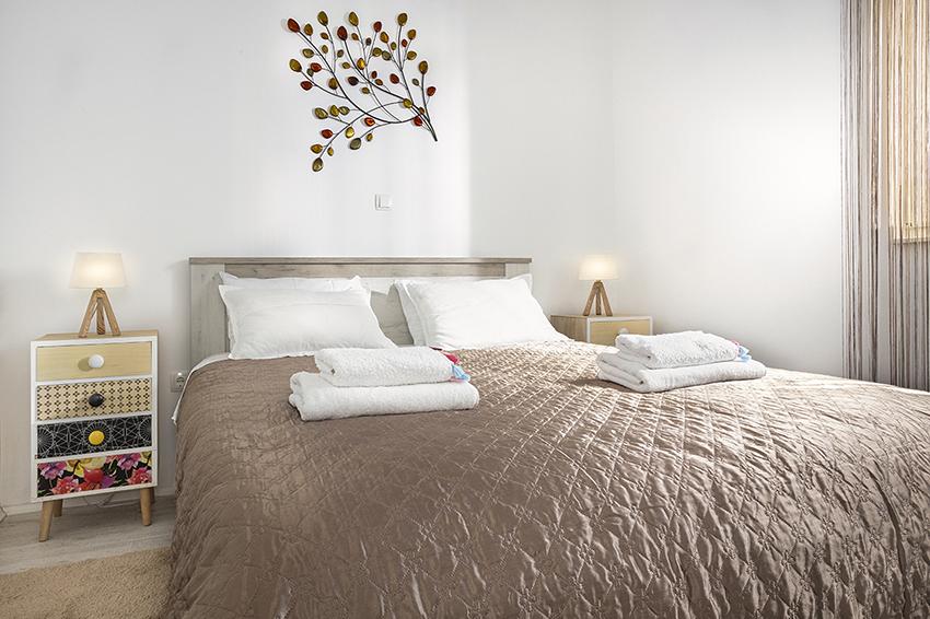 The apartment is located in a secluded area in the older part of the village at the top of the hill (75 m to 82 m above sea level), so you will enjoy the peace and quiet. It is 100 m away from the nearest beach. It can be reached on foot by the old road or on foot or by car on the new road. The kitchen is modernly equipped and you can use the refrigerator with freezer, oven, dishwasher, espresso machine, toaster, kettle, microwave. The building has air conditioning and underfloor heating. The bathroom is equipped with a washing machine. The apartment has two rooms. One has a double bed and the other room has two single beds that can be joined. You can also enjoy the outside on the spacious terrace.