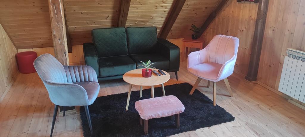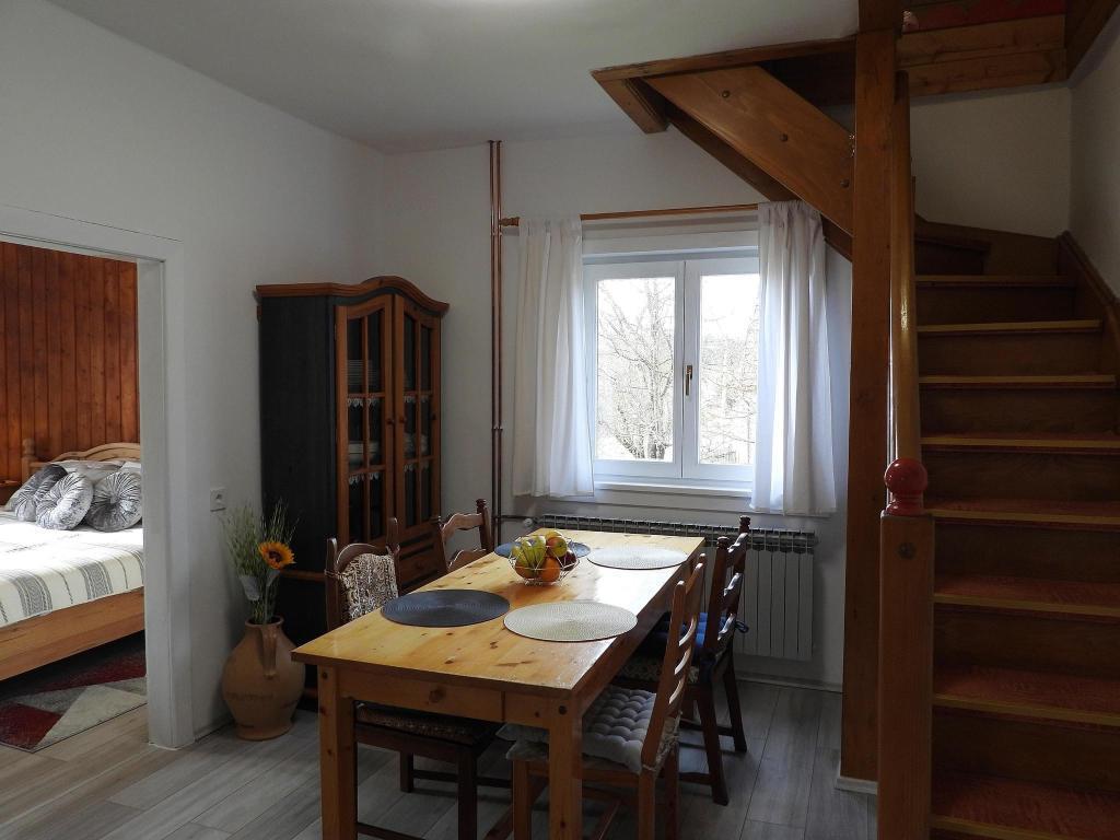 Holiday house Elf is located in a quiet location in the town of Kupjak. The facility is 60 km from Rijeka and includes private parking and free WiFi. The accommodation has 2 bedrooms equipped with a double bed, wardrobe, nightstand. The upstairs room has an anteroom with TV and seating. Bathroom with toilet, shower cabin, sink with mirror. Living room with sofa bed for 1 or 2 people, coffee table, chest of drawers and TV. Dining room and fully equipped kitchen with fridge, oven, dishwasher, electric hob and kettle. There is one cot in the facility, and towels and bed linen are available within the facility. You also have at your disposal a wooden sofa, a gas grill and a jacuzzi for relaxation in the covered part of the house.