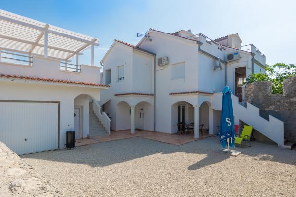 The apartment is very large and clean, suitable for families. the owners are very friendly and helpful. very well equipped kitchen - lots of dishes, two refrigerators, air conditioning on both floors, washing machine...parking space, yard for children to play, small shop nearby and very close to the beach. the sea is very clean.