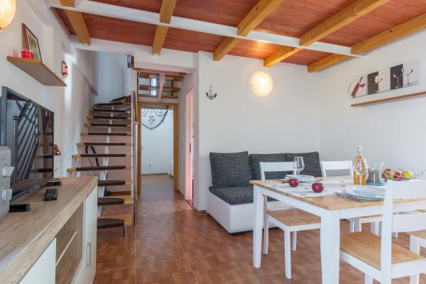 The apartment is clean, well-maintained, suitable for families. The kitchen equipment met our needs (toaster, microwave, 2 fridges and all the tableware for 6 people) We only lacked glasses for rakijkie or wine but we managed it. The stairs are quite high but my 4 year old managed it easily. The apartment has 2 air conditioners so you can take a break from the Croatian heat. The sea is quite close. After leaving the gate, a beautiful view of the mountains and the sea opens. Very polite and nice hosts. I wholeheartedly recommend the town and the apartment itself.