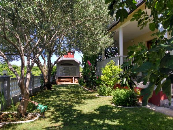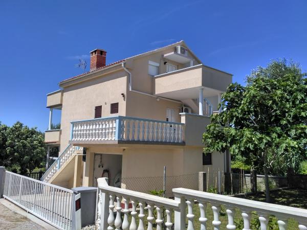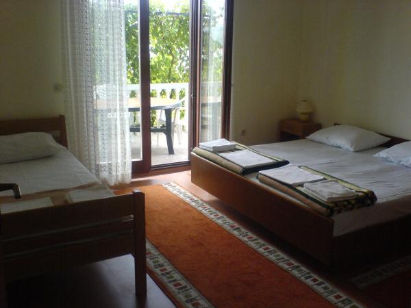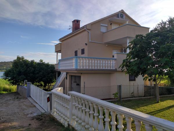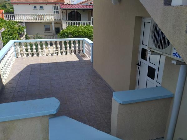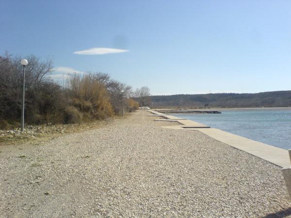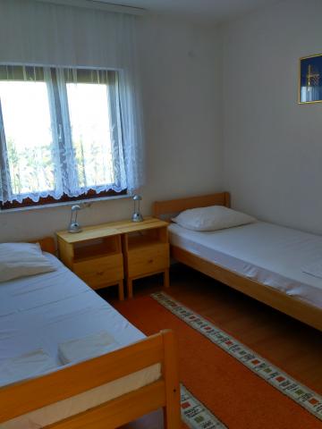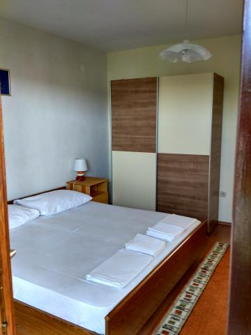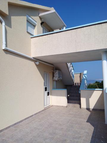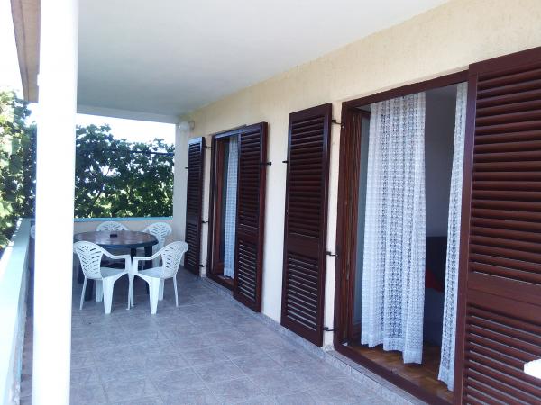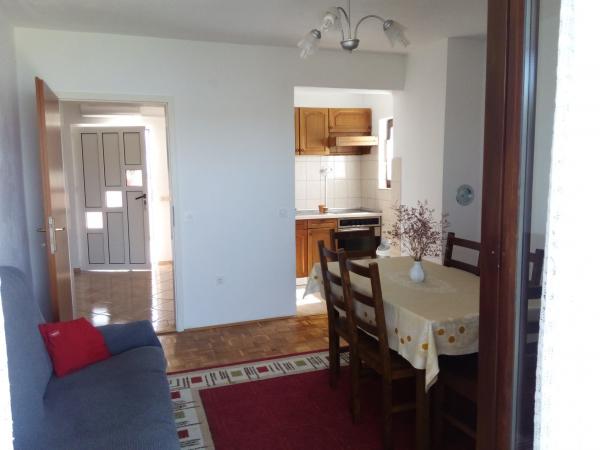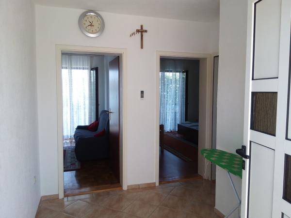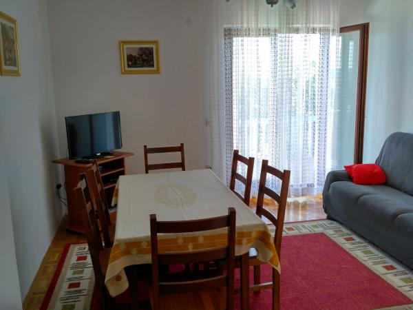 The apartment is located in a house on the first floor. The apartments have two bedrooms. In one bedroom are two single beds. The second bedroom has a double bed and another bed on the side. From this room is exit to a large balcony overlooking the sea and the center Miocic Rtina. The living room has a sofa set (sofa), dining table with 6 chairs and TV. There is also a exit to balcony. The kitchen is connected with living room and is equipped with dishes and cooking utensils for 6 people. The kitchen is equiped with electric hob (cooking), oven, fridge and kettle. The bathroom is equipped with a standard shower and el.water heater. Air conditioning was installed in the hallway. The entrance to the apartment is from a large terrace which can also be used as an outdoor shower and barbecue. To the beach You have to walk only 10 seconds. Distance to the bakery and a restaurant is 400m while the store (mini market) and other restaurants 800m.