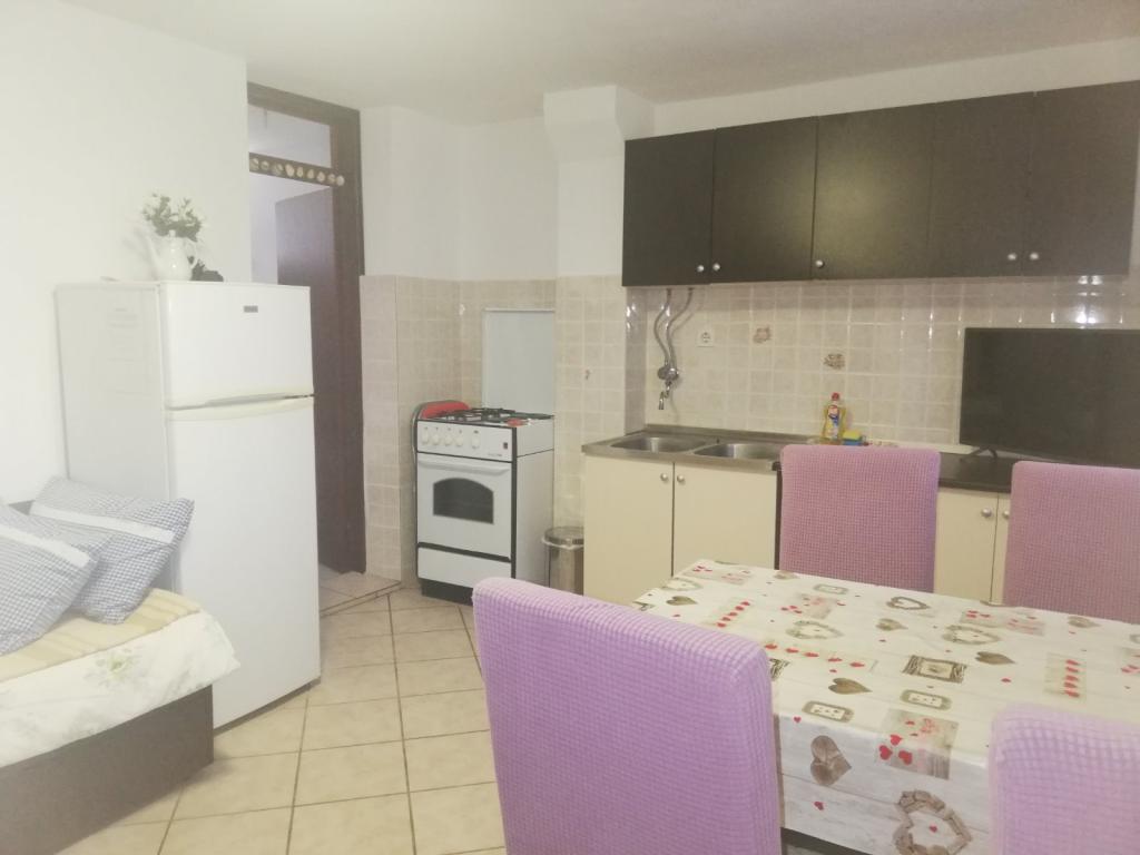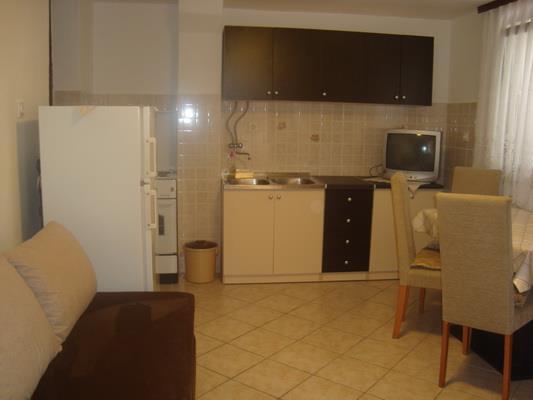 The apartments are in a quiet place, fully furnished. The kitchen has all the necessary utensils for storing and serving food and drinks. They also have a refrigerator with freezer, gas / electric stove with oven. The apartments are air conditioned. WiFi The bathroom has a shower, toilet, sink with mirror. Next to the apartments are covered terraces with wide sea views. Masonry barbecue. Next to the apartments is provided parking in your own yard. The beach is 70 meters. The beach is ideal for children. Additional facilities on the beach include a bowling alley and a water volleyball net.