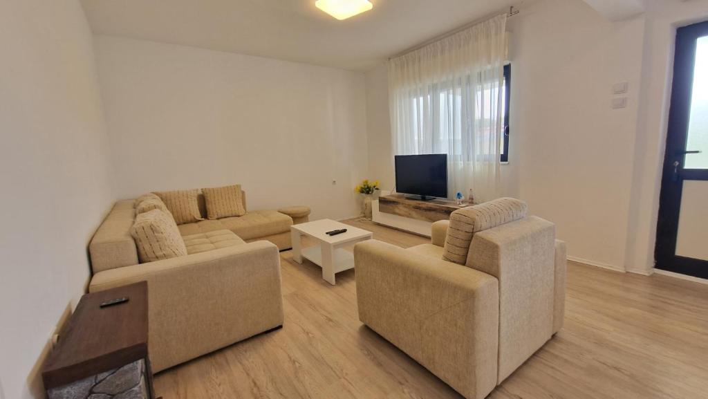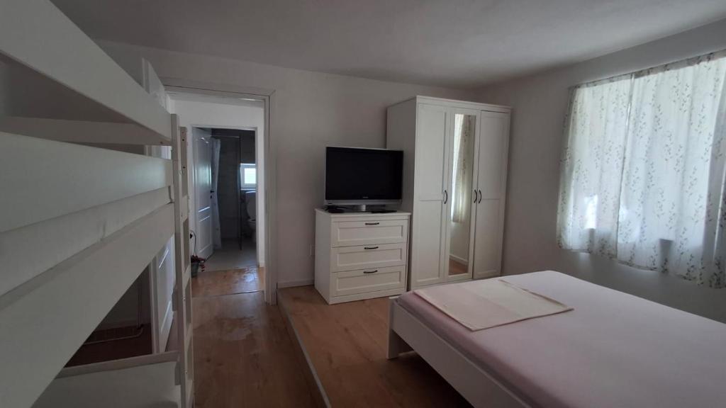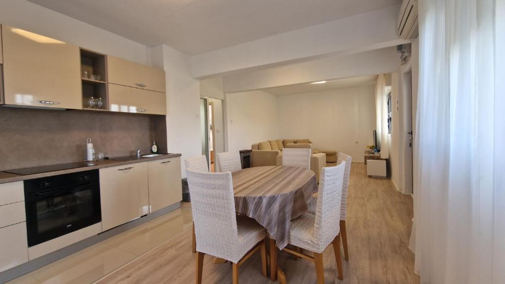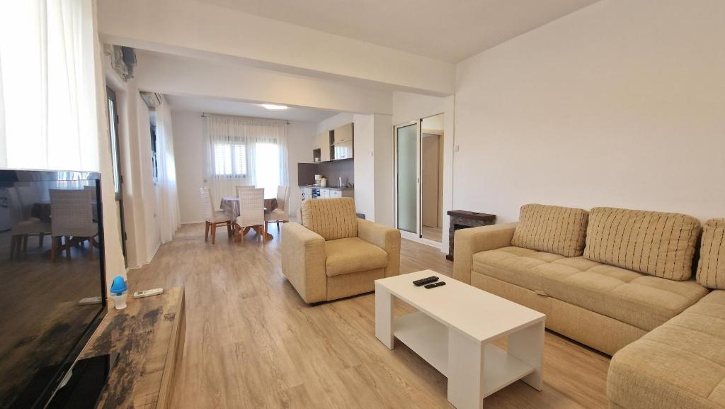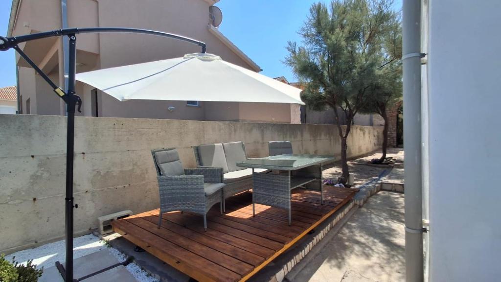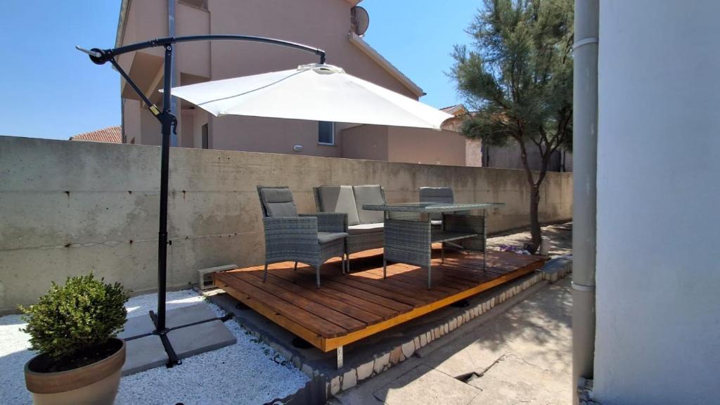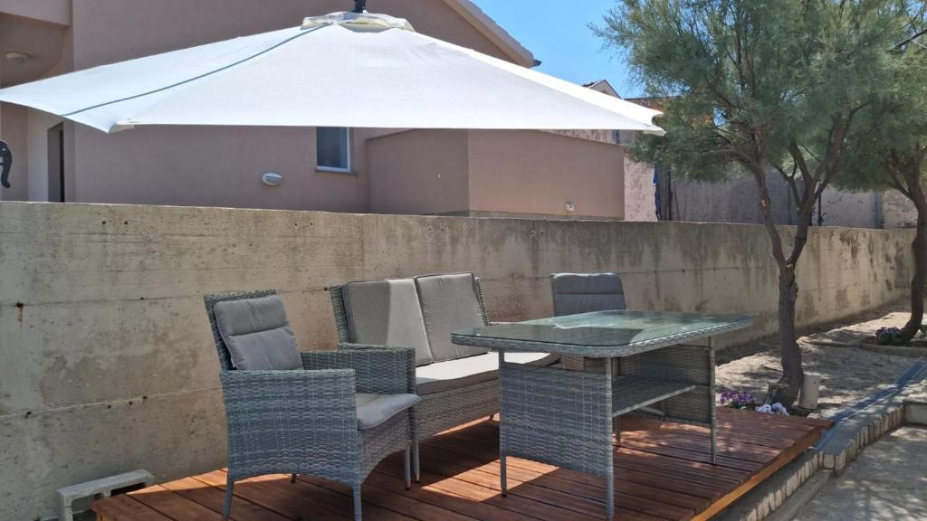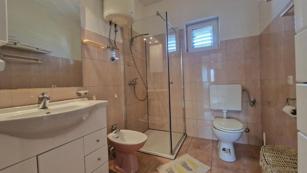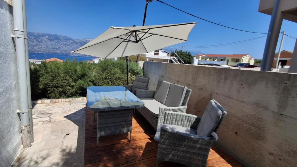 Our guests have at their disposal 2 completely separate apartments, parking and a complete garden. In the garden there is a special facility with a grill and an outdoor shower. The apartment offers a beautiful view of the sea and the Velebit mountain and the beach is only a 3-minute walk away.