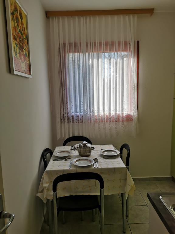 The apartment consists of a spacious living room with sofa corner, bedroom with double bed, kitchen and bathroom. all very spacious and clean. the kitchen has a gas stove, oven and large refrigerator. The apartment has no air conditioning but it is not needed. There is also WiFi. The network is available free of charge at the beach in 30 minutes session. The building is located in a quiet area. The night did not reach any noises. The beach is closer than it seems looking at the Google Earth route takes 3-4 minutes. It features a whole yard at the building where you can put the car. Housewife practically not seen. Very good place for those seeking peace. I would recommend.