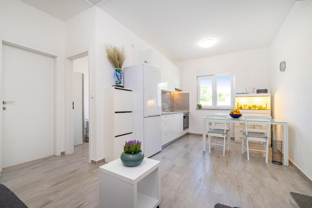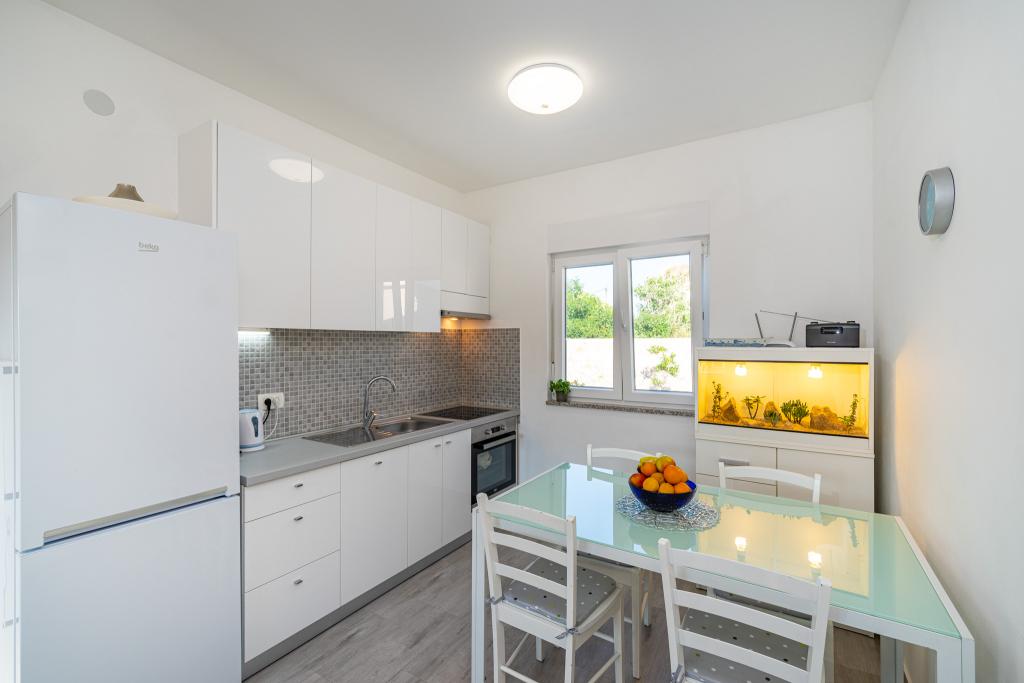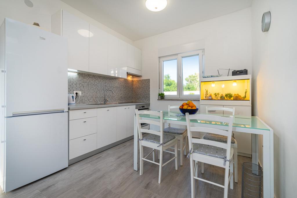 Fully equipped house, located 150 m from the sea, in a quiet part of Ražanac. It consists of 31 m2 of living space, 25 m2 terrace and 430 m2 garden with locked parking. The house has a capacity for 4 people. In the bedroom there is a double bed measuring 160 x 200 cm and in the living room a sofa bed with a reclining part measuring 140 x 200 cm. The facility is located 3 minutes walk to the center and other necessary facilities such as shops, restaurants, markets, post office, ambulance and ATMs. Ideal for a quiet and relaxing holiday.