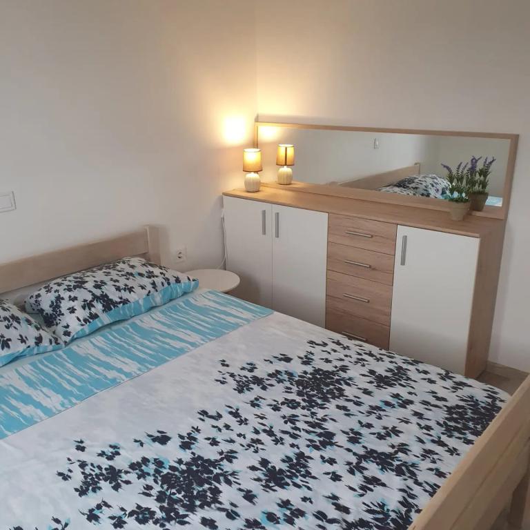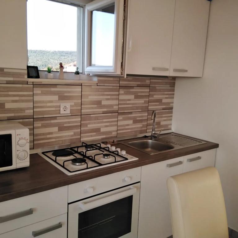 A peaceful vacation with a beautiful view? We are here :) The apartment is located in the village of Ražanj near Rogoznica. The entire floor just for you, consists of two bedrooms, a kitchen with a dining room, a bathroom and a terrace with a beautiful view of the sea. Parking is in the yard, free WiFi and the possibility of grilling. Ideal for four guests. The beach is only 200 m away on foot. Primošten is 20 minutes away, and Trogir 30 minutes by car. In the village there is a shop and several restaurants that offer Mediterranean food. Daily delivery of bakery products, fruit, vegetables and fresh fish in front of the house.