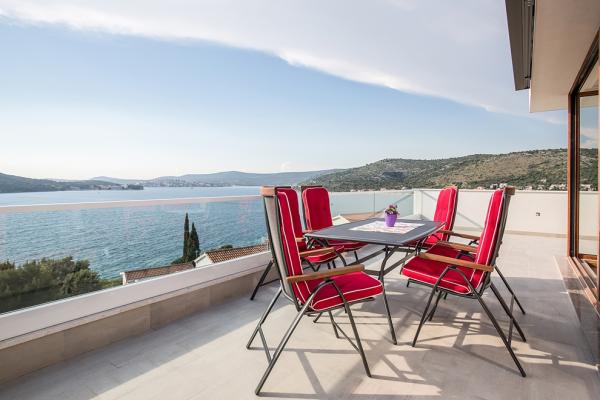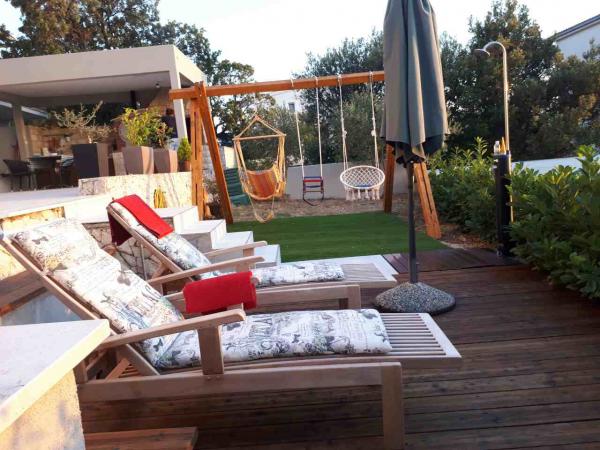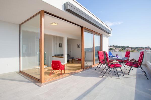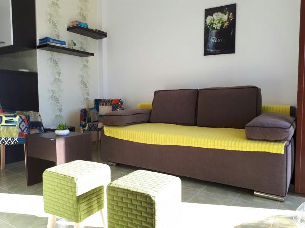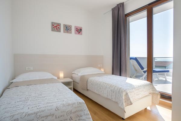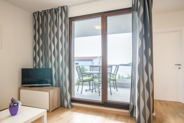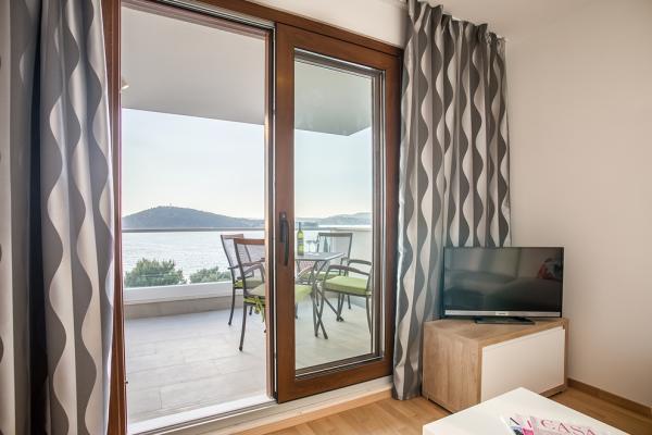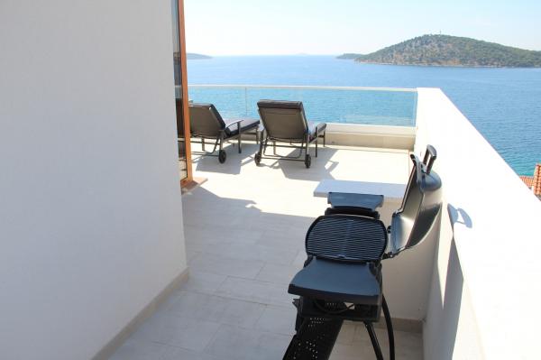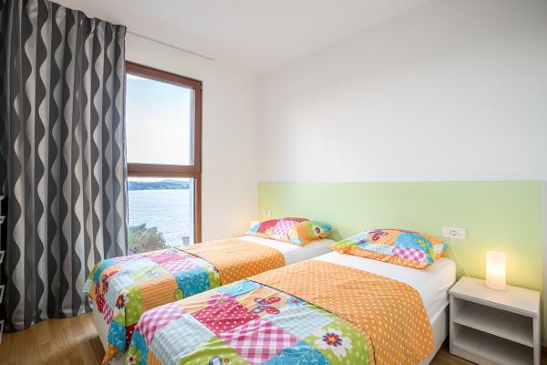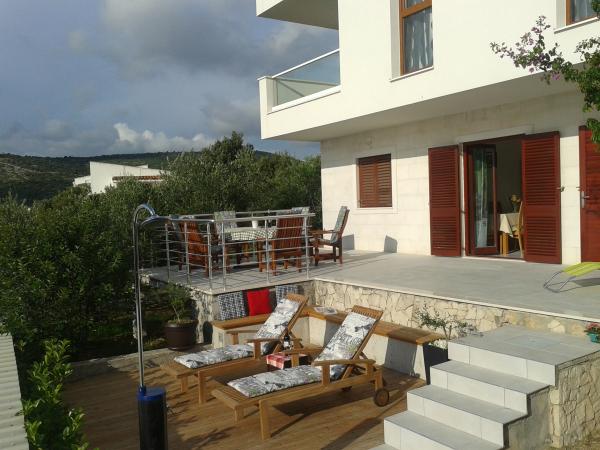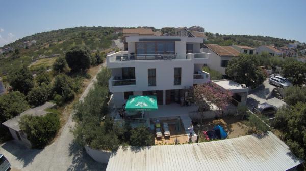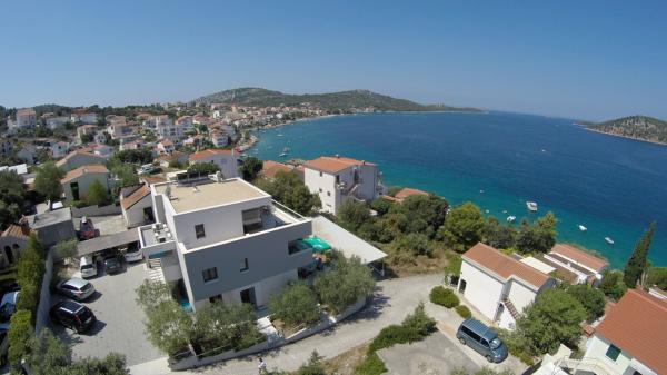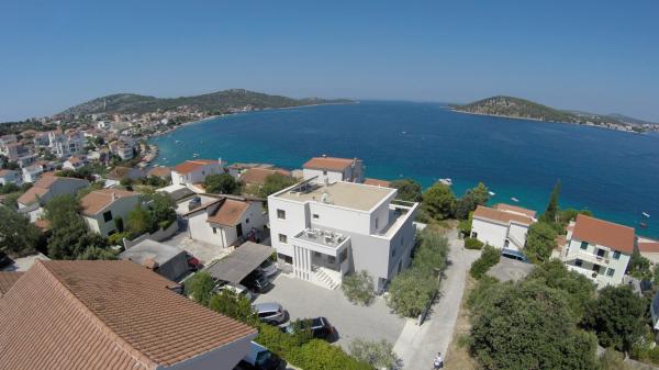 The newly-equipped Jelena apartments are located in Ljoljinica bay, next to Ražanj, 7 km from Rogoznica and Marina Frapa and 15 km from Aurora-Primošten nightclub. An ideal place for a quiet holiday, with a clean sea, with a view of the romantic sunsets. They are located 50 m from the sea. The nearest grocery store and restaurant are 200 m away. Apart from the apartments there is a parking place. It is possible to visit within 50 km of the national parks of Kornati, Krka and Velebit and the cities of Split, Trogir, Primošten, Sibenik and Zadar. New luxuriously decorated apartments include a washing machine, dishwasher, kettle, oven, hair dryer.