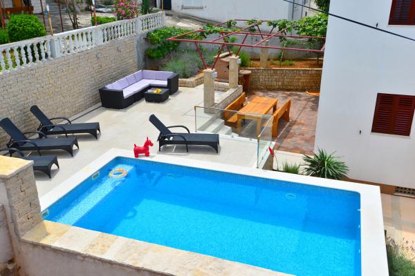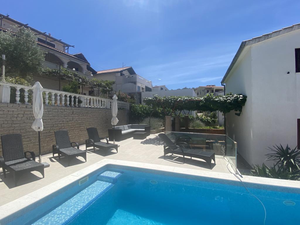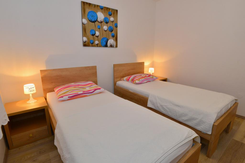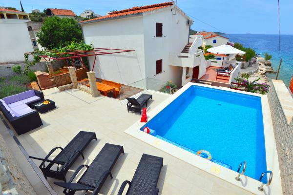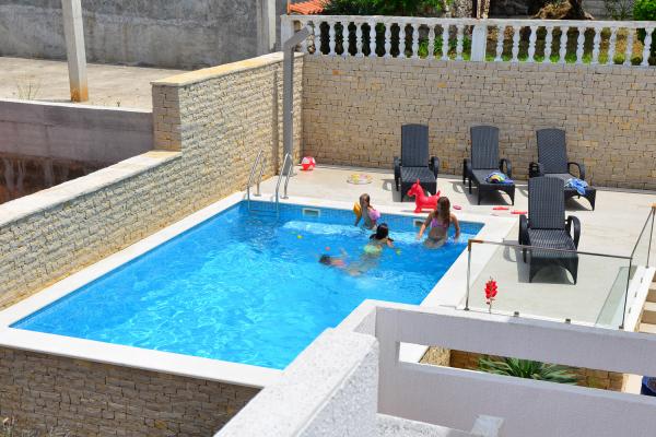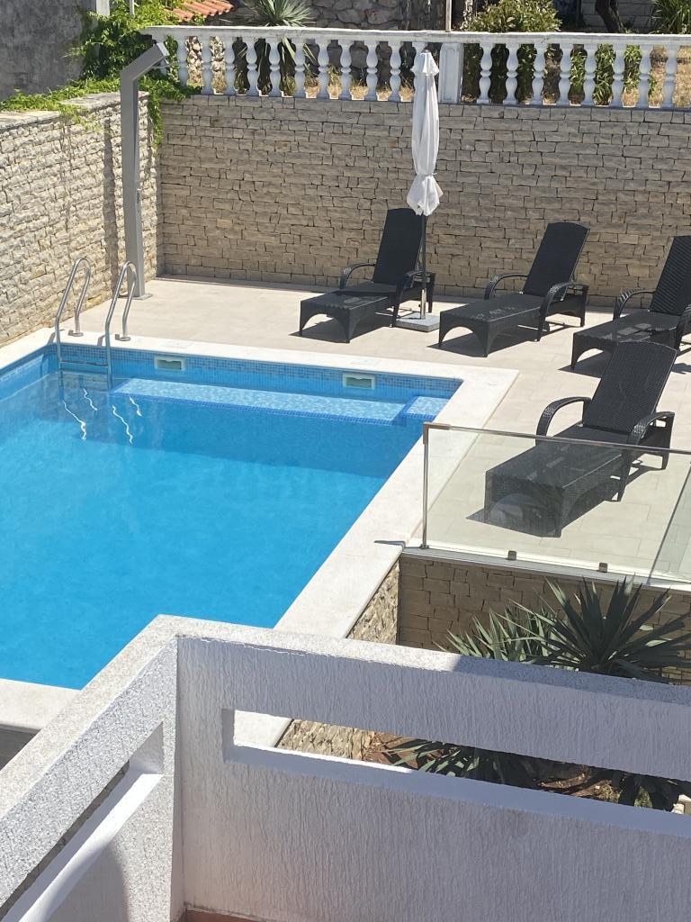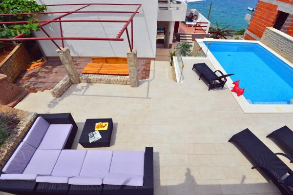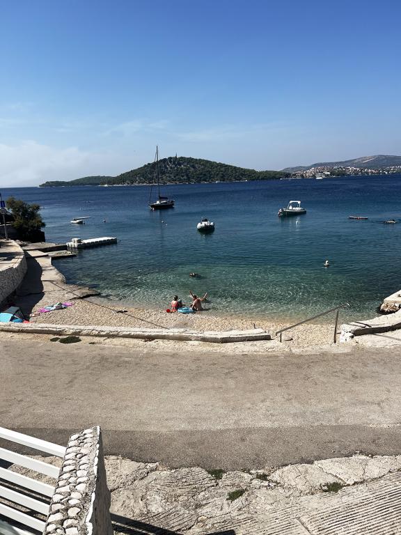 The apartments are extremely comfortable and are located in a house next to the sea. Just above the small beach. The beach is sandy and ideal for families with children. Guests who want a more intimate stay by the sea can opt for stijenovite parts of the coast which can be reached in a short walk. The apartments consist of two spacious bedrooms, bathroom, kitchen and large living room. Each apartment has a terrace with table and chairs. Our guests enjoy morning coffee on the terrace which offers fantastic views of the sea and the sea. Beside the house is a swimming pool shared by the guests accommodated in our two apartments. Beside the pool is a spacious garden equipped with lounge chairs and dining table. Guests can use a new grill that is set for their use. The apartment is free internet use. Distance to the small market is 50 meters. At the same distance is a restaurant / pizzeria. Distance to town Ražanj is 500 m. The pleasure of a walk to Ražanj because the path next to the sea