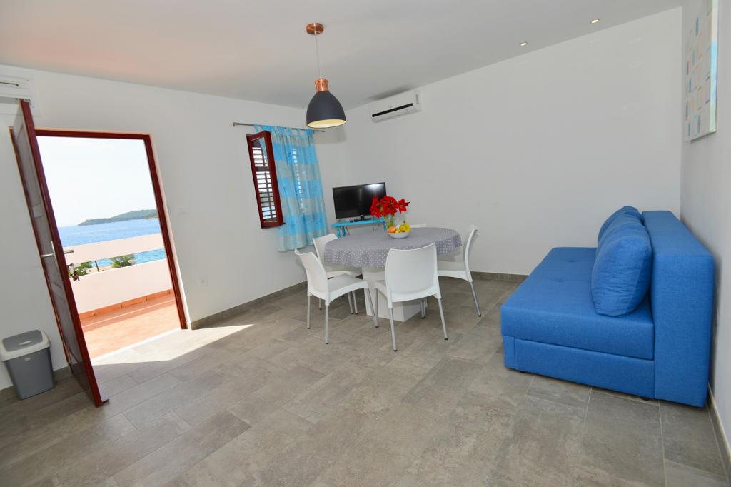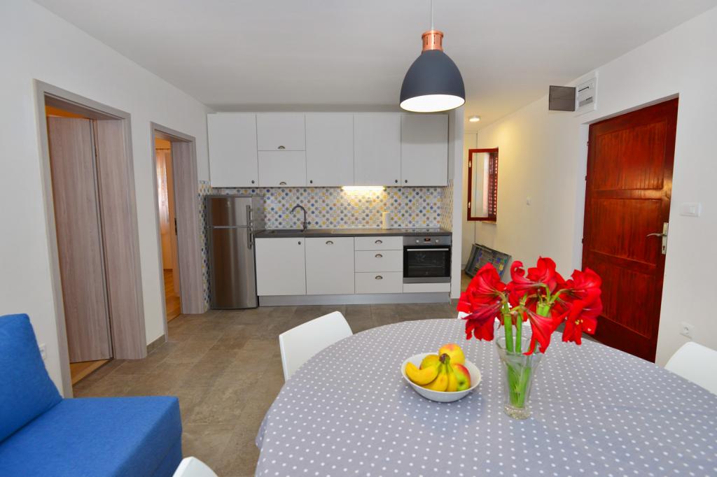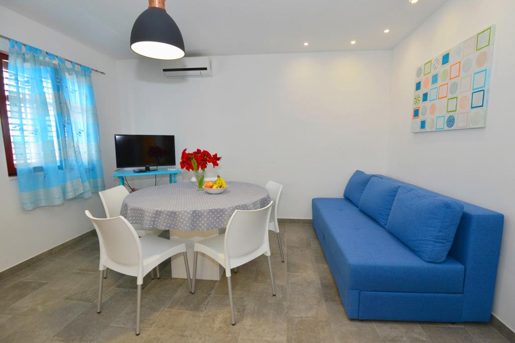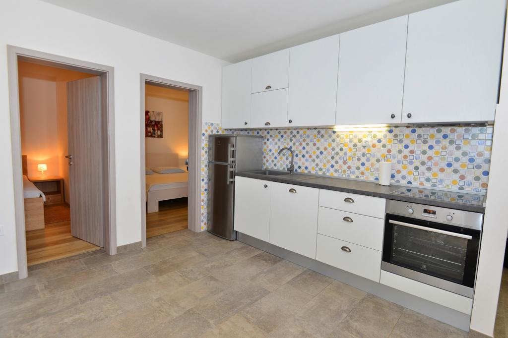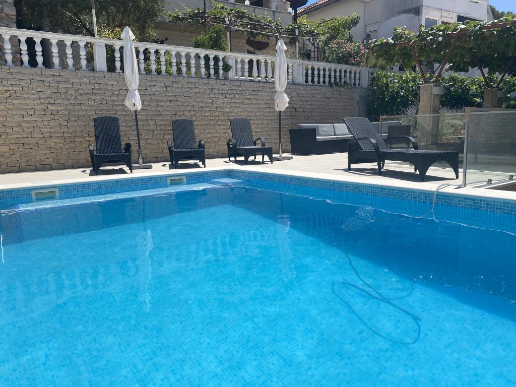 The apartments are extremely comfortable and are located in a house next to the sea. Just above the small beach. The beach is sandy and ideal for families with children. Guests who want a more intimate stay by the sea can opt for stijenovite parts of the coast which can be reached in a short walk. The apartments consist of two spacious bedrooms, bathroom, kitchen and large living room. Each apartment has a terrace with table and chairs. Our guests enjoy morning coffee on the terrace which offers fantastic views of the sea and the sea. Beside the house is a swimming pool shared by the guests accommodated in our two apartments. Beside the pool is a spacious garden equipped with lounge chairs and dining table. Guests can use a new grill that is set for their use. The apartment is free internet use. Distance to the small market is 50 meters. At the same distance is a restaurant / pizzeria. Distance to town Ražanj is 500 m. The pleasure of a walk to Ražanj because the path next to the sea