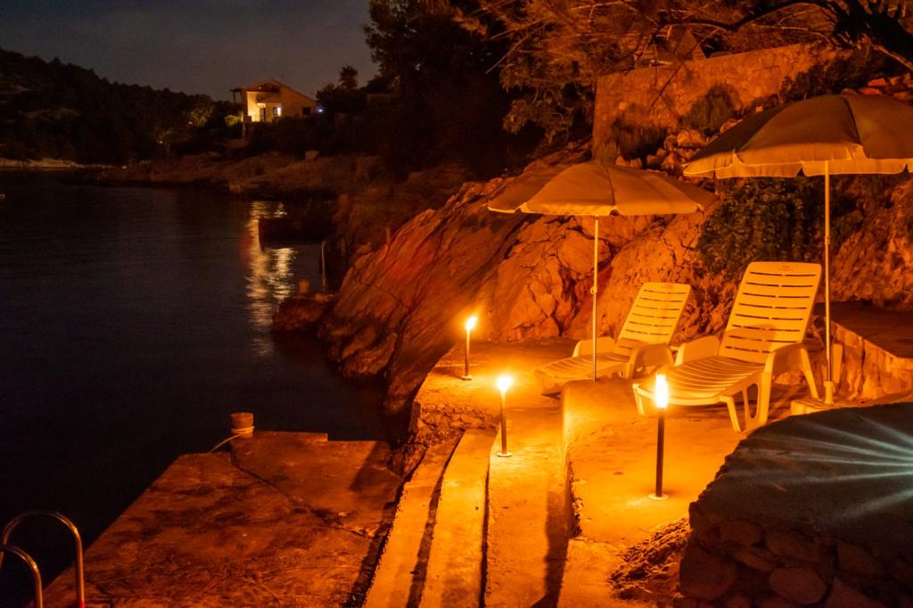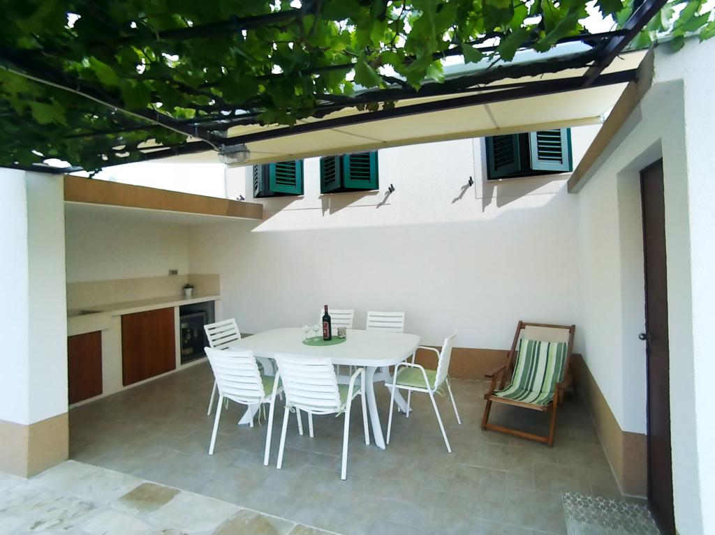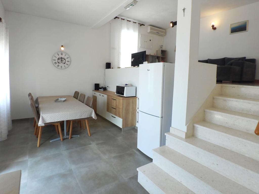House Adriana is located in a quiet bay directly on the sea with a beautiful view and terrace. The house is equipped with everything you need for a family vacation and more. Everything is very clean and tidy. Each window offers a beautiful view of the sea. Vendors come every day with fresh bread, pastries and fish. One kilometer away is the first store. The hosts are "people in place". We were greeted with a welcome salary, a boat ride and a farewell gift. The house has its own place for swimming and relaxing in the sun and its own deck chairs. All recommendations for staying in this accommodation.