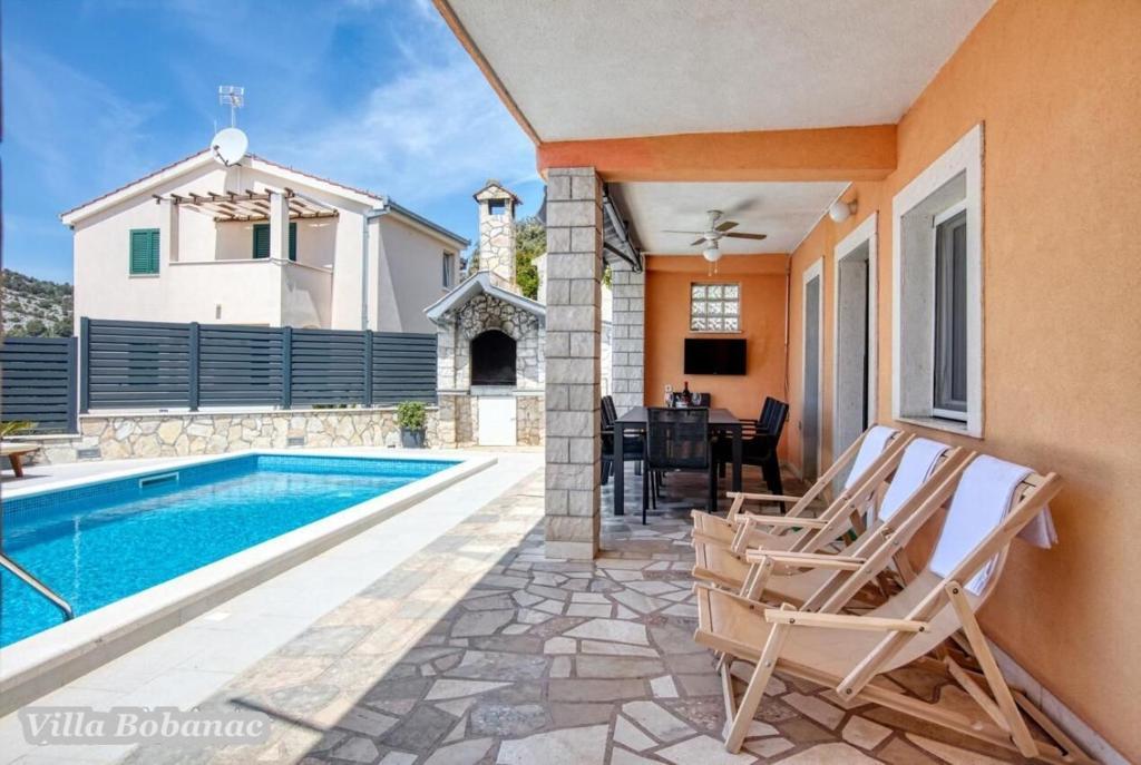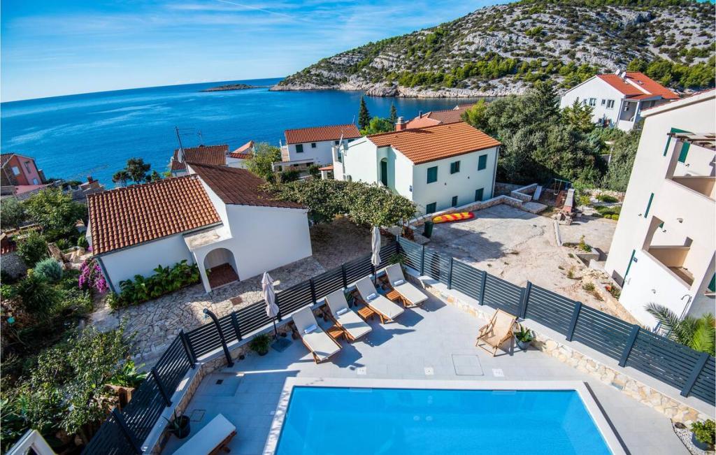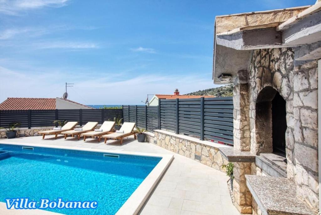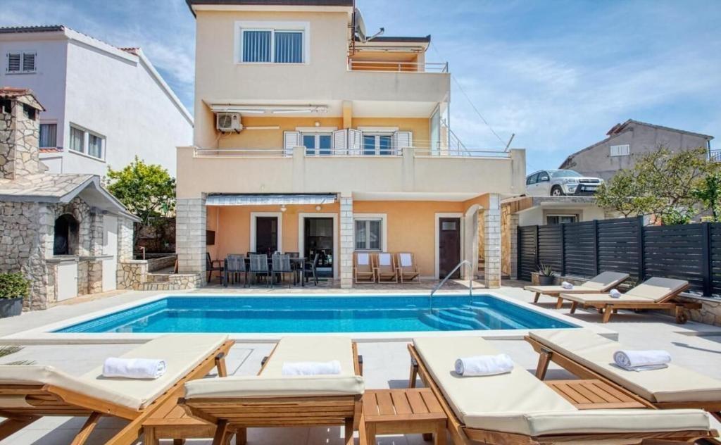 Enjoy a newly renovated vacation home with a heated pool and a beautiful sea view, just 73 meters from the beach. The house consists of 3 units with a total of 5 bedrooms, 3 bathrooms and 3 kitchens. Private closed parking, air conditioning, grill and internet are included in the price. Possibility of moorings for the boat. Welcome
