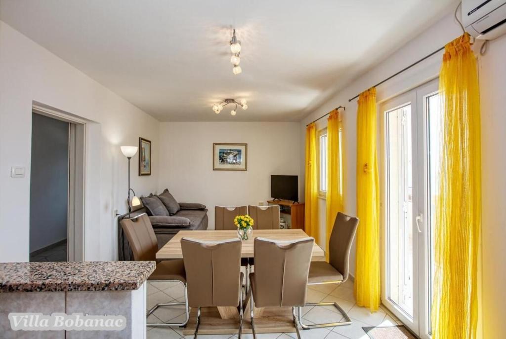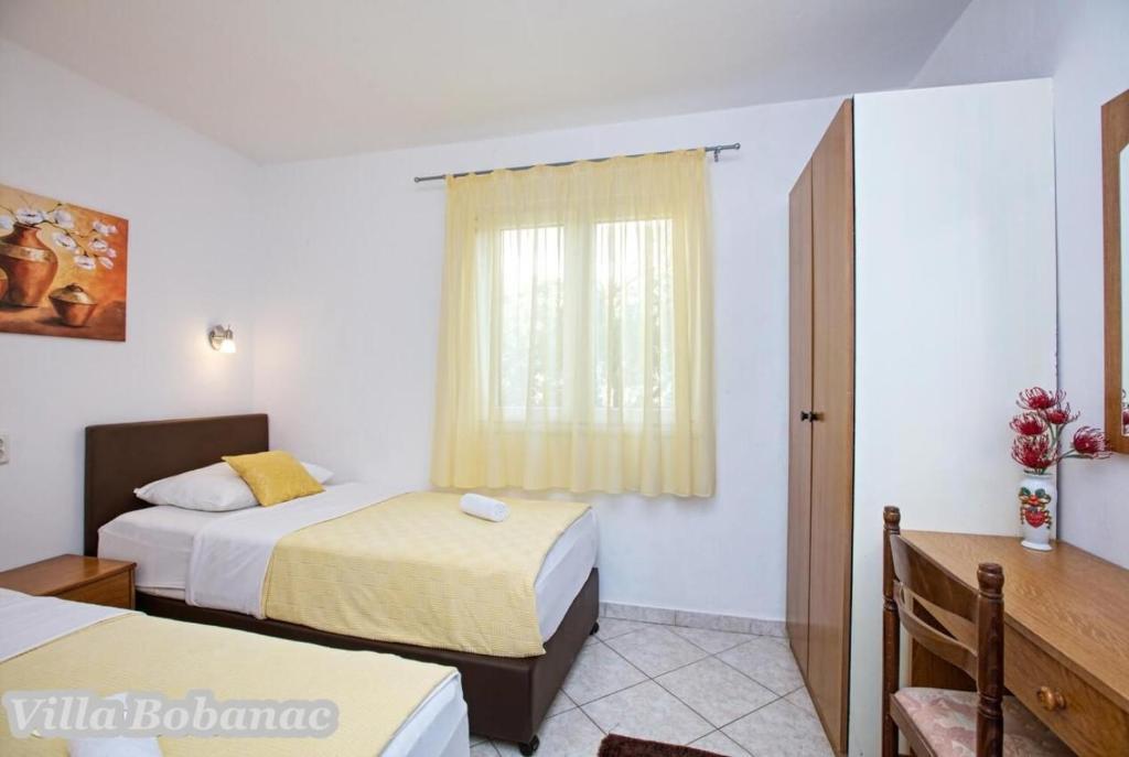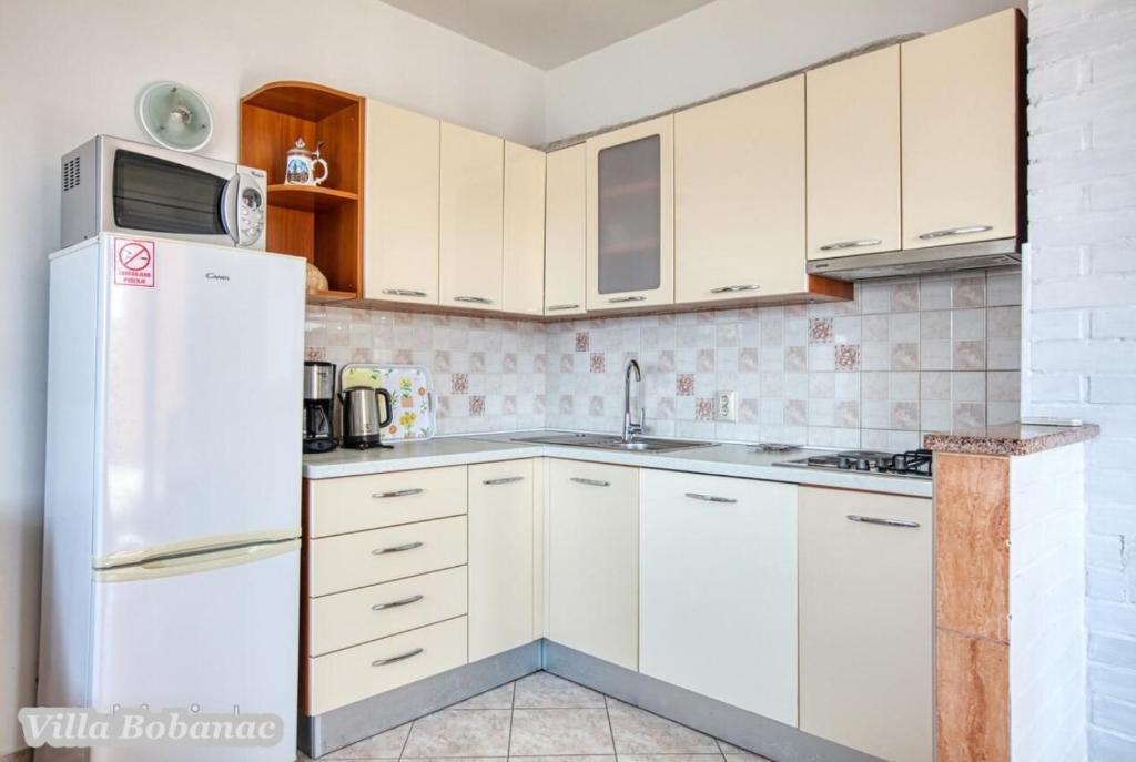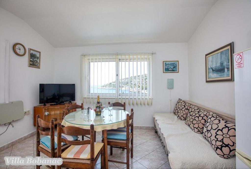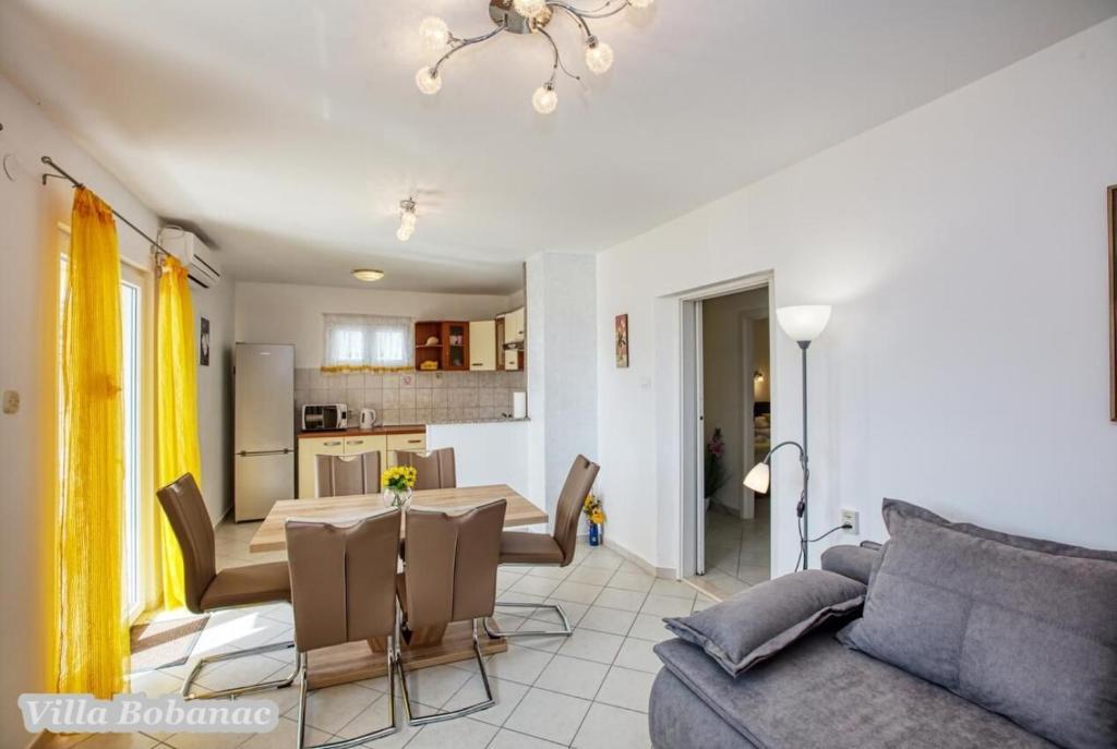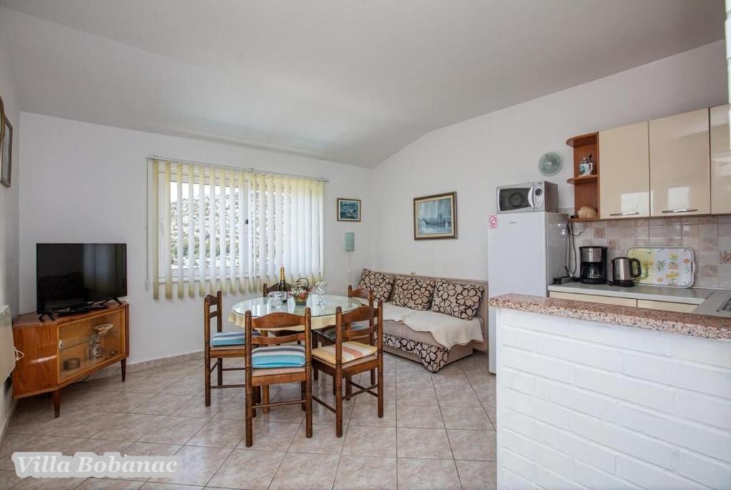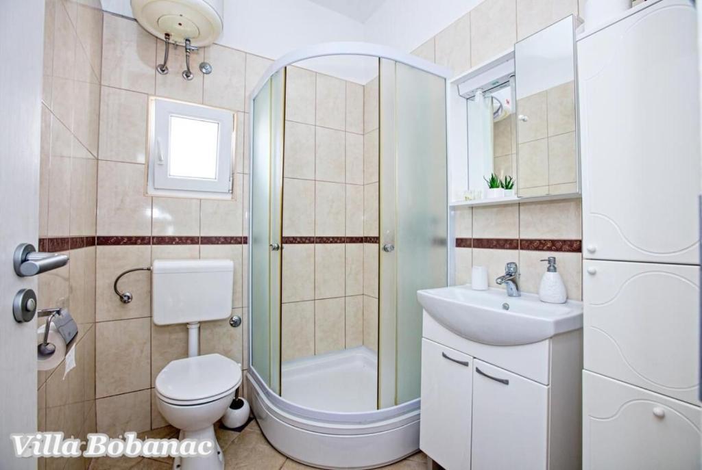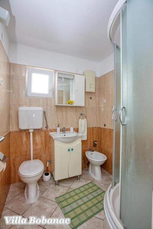 Family suites Bobanacových first time we visited with our 12-member gang in 2011. He took us pleasant host and close the sea. It's a place where there are no crowded beaches, where the nerves tape recorder, which goes dealers shipping companies inviting to trips. Is there a typical Czech relax and comfort. Sea is 80 meters from the apartment. The beach is rocky with buildings built concrete panels where you lay the mat and you can bask. The sea is very clean, the beach is suitable for swimmers, there is a gradual approach to the sea. This can be found in the village of 1 kilometer. We first chose a place by the distance from the sea and apartments by price. Hardly the coast prices are so convenient as it is here in Razanj. Since 2011 we have been there every year in late July and August, and we still do not want to leave this beautiful place and look for another. Who wants a full 14 days just roll the sea, might not pull your heels. Every day in the morning runs bakers and fishermen. They stop at the entrance to the house. Prices of bread and pastries and fish are only slightly higher than us. Who does not want to just roll, can go and see the sunset - there are three major habitats, where it can be seen - a peninsula with a chapel about 2 km away, a military fortress on a hill about 80 meters 1 mile away and the hill above the village about half a mile away. Who would you like to be free of worries, can go down to the nearby larger towns Primosten, Trogir or to larger towns Sibenik, Split. For Sibenik are known waterfalls of Krka, which can be reached in about an hour's drive. But I would recommend a visit early in the morning from 8:00 am-now, when there are no crowds. We're a little cyclists, we have bikes there with him, but the terrain around not very suitable for classical Czech cycling. There is in fact hilly terrain, which evaluates the contrary, those who want to ride around a bit. The only road that could be considered as a cycling is a coastal expressway. It gave her a ride safely on a bike, because the base transit is shielded to inland highway and because car drivers are considerate and cyclists are here to look a bit like exotics. The roads are nice without potholes. The apartments are well-appointed kitchen, cooking and dining utensils, air conditioning. Bobanacových family is very friendly, we feel there really s