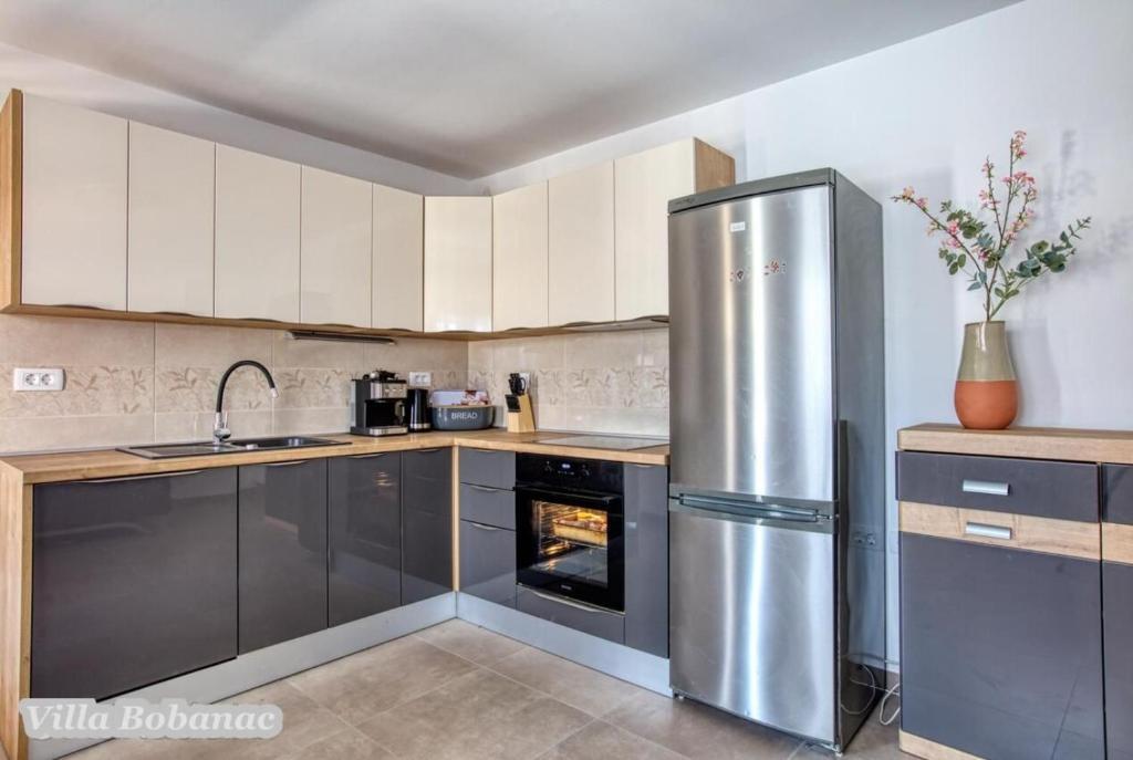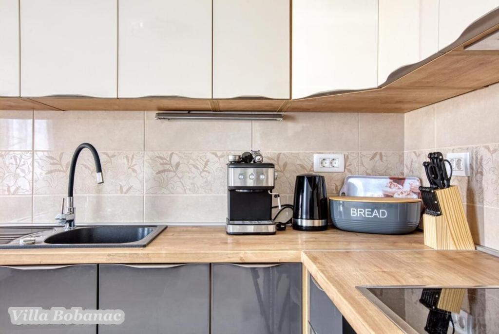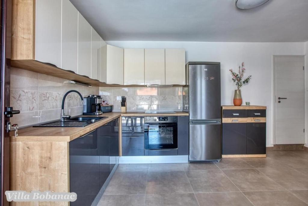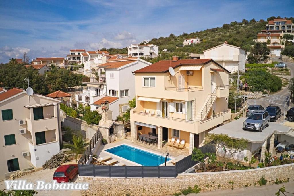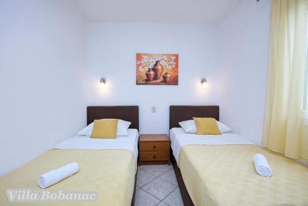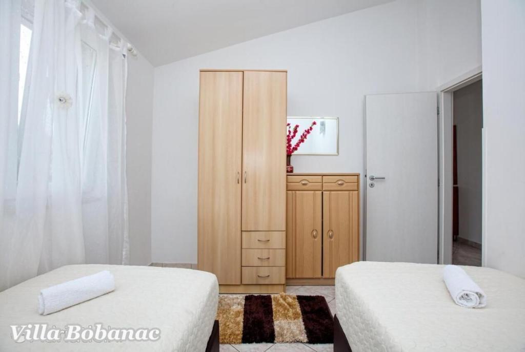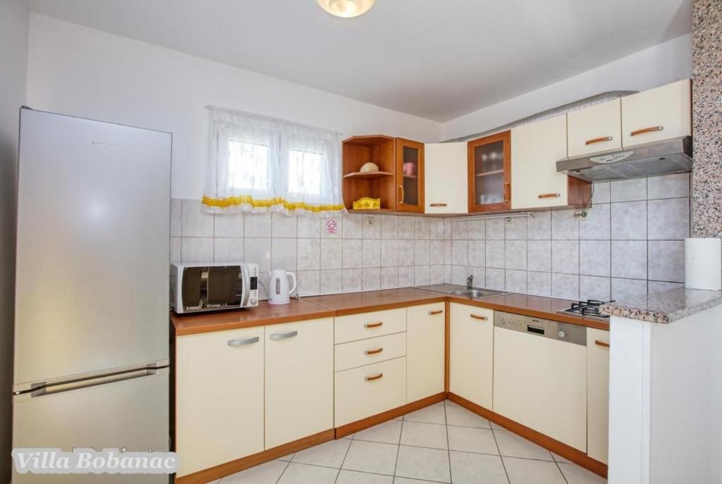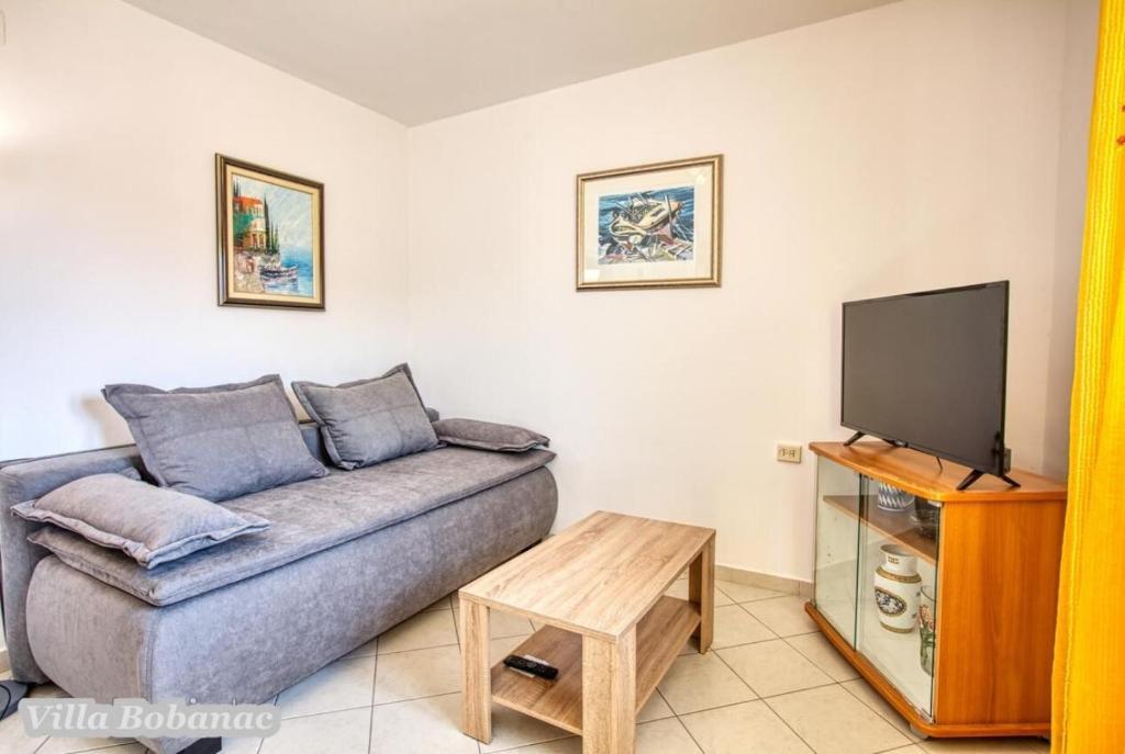 Family suites Bobanacových first time we visited with our 12-member gang in 2011. He took us pleasant host and close the sea. It's a place where there are no crowded beaches, where the nerves tape recorder, which goes dealers shipping companies inviting to trips. Is there a typical Czech relax and comfort. Sea is 80 meters from the apartment. The beach is rocky with buildings built concrete panels where you lay the mat and you can bask. The sea is very clean, the beach is suitable for swimmers, there is a gradual approach to the sea. This can be found in the village of 1 kilometer. We first chose a place by the distance from the sea and apartments by price. Hardly the coast prices are so convenient as it is here in Razanj. Since 2011 we have been there every year in late July and August, and we still do not want to leave this beautiful place and look for another. Who wants a full 14 days just roll the sea, might not pull your heels. Every day in the morning runs bakers and fishermen. They stop at the entrance to the house. Prices of bread and pastries and fish are only slightly higher than us. Who does not want to just roll, can go and see the sunset - there are three major habitats, where it can be seen - a peninsula with a chapel about 2 km away, a military fortress on a hill about 80 meters 1 mile away and the hill above the village about half a mile away. Who would you like to be free of worries, can go down to the nearby larger towns Primosten, Trogir or to larger towns Sibenik, Split. For Sibenik are known waterfalls of Krka, which can be reached in about an hour's drive. But I would recommend a visit early in the morning from 8:00 am-now, when there are no crowds. We're a little cyclists, we have bikes there with him, but the terrain around not very suitable for classical Czech cycling. There is in fact hilly terrain, which evaluates the contrary, those who want to ride around a bit. The only road that could be considered as a cycling is a coastal expressway. It gave her a ride safely on a bike, because the base transit is shielded to inland highway and because car drivers are considerate and cyclists are here to look a bit like exotics. The roads are nice without potholes. The apartments are well-appointed kitchen, cooking and dining utensils, air conditioning. Bobanacových family is very friendly, we feel there really s