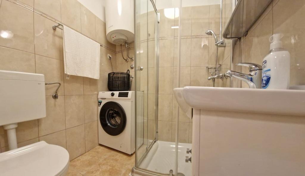 The apartment is located on the ground floor of a residential building, which makes it easily accessible. The interior is modernly equipped for staying at any time of the year: the space is air-conditioned with two air conditioners, and for colder days there is underfloor heating. For your additional comfort and privacy, all windows have roller shutters and mosquito nets. The location is excellent for those who love walking: it takes only 10 minutes to walk to the beach, and 15 minutes to the city center. All essential amenities, such as shops, public transport, pharmacies, hospitals, shopping centers, cafes, etc. are located in the immediate vicinity. The building has its own free parking for residents and guests. Parking cannot be reserved in advance, but since it belongs to the building, it makes it easier to find a place.