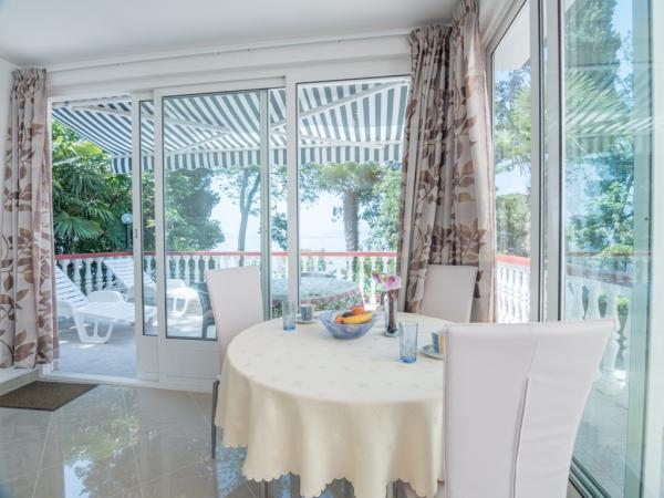 The apartment is located in a quiet part of Rijeka only 4 km away from the center of Opatija and 5 km away from the center of Rijeka. It has its own exit to the beach which is only 1 minute away from the apartment and the exit to the promenade. There is a private closed parking place and a barbecue. It has a large spacious terrace overlooking Opatija and the island of Cres. Arriving by us you will have secured privacy and the necessary rest as the apartment is located in a separate building.