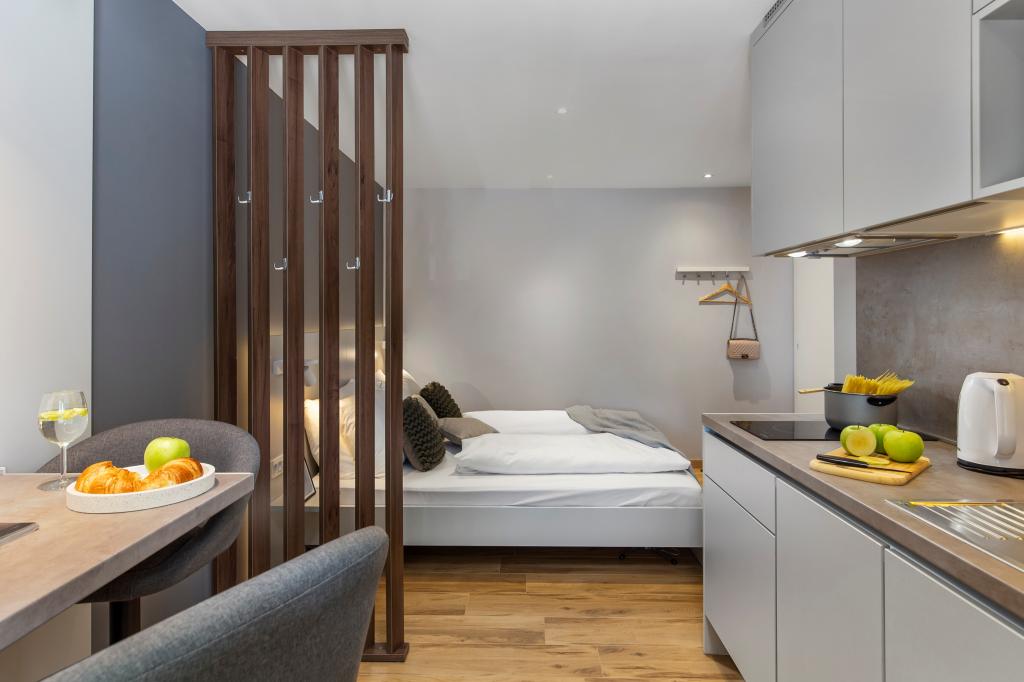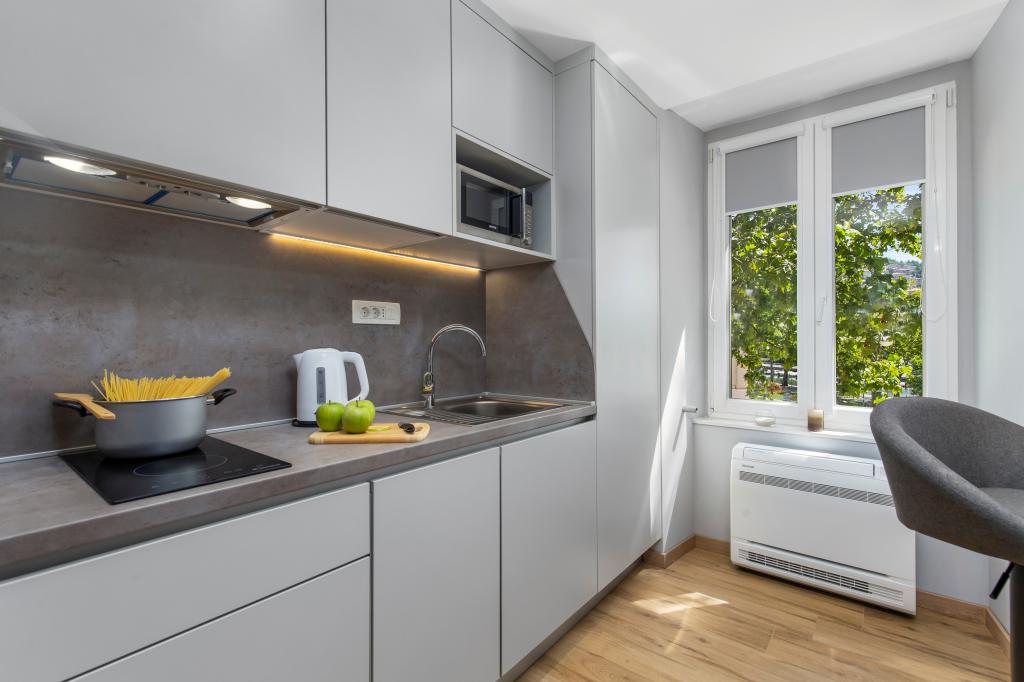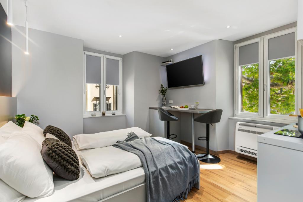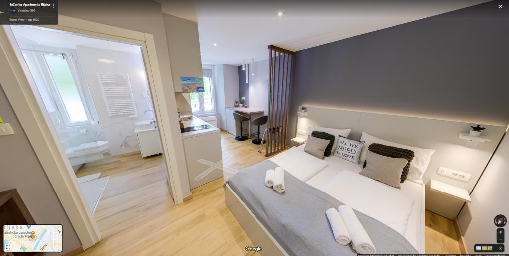 InCenter Apartments Rijeka are located in the very center of Rijeka, right next to Korzo, in an ideal location for guests who want to be close to everything and explore the city on foot. Studio apartments in the center of Rijeka – self check-in, right next to Korzo Our modernly decorated studio is perfect for couples, solo travelers and business guests looking for a comfortable, practical and easy stay in the city center. A big advantage is the self-check-in via PIN, which allows for a fast, flexible and carefree arrival. The apartment offers everything you need for a pleasant stay: a king-size bed and a pleasant open-space layout a fully equipped kitchen with a dishwasher, refrigerator, microwave, kettle, coffee maker and utensils a modern bathroom with a walk-in shower and a hairdryer air conditioning, TV with MaxTV IPTV, Netflix and fast Wi-Fi parking nearby restaurants, shops, public transport and the main city attractions just a few steps from the apartment The apartment is located on the 2nd floor without an elevator. If you are looking for a modern studio apartment in the center of Rijeka with a great location, easy access and everything you need for a short or business stay, InCenter Apartments are a great choice. Google 360 virtual tour and more information: www.incenter.com.hr