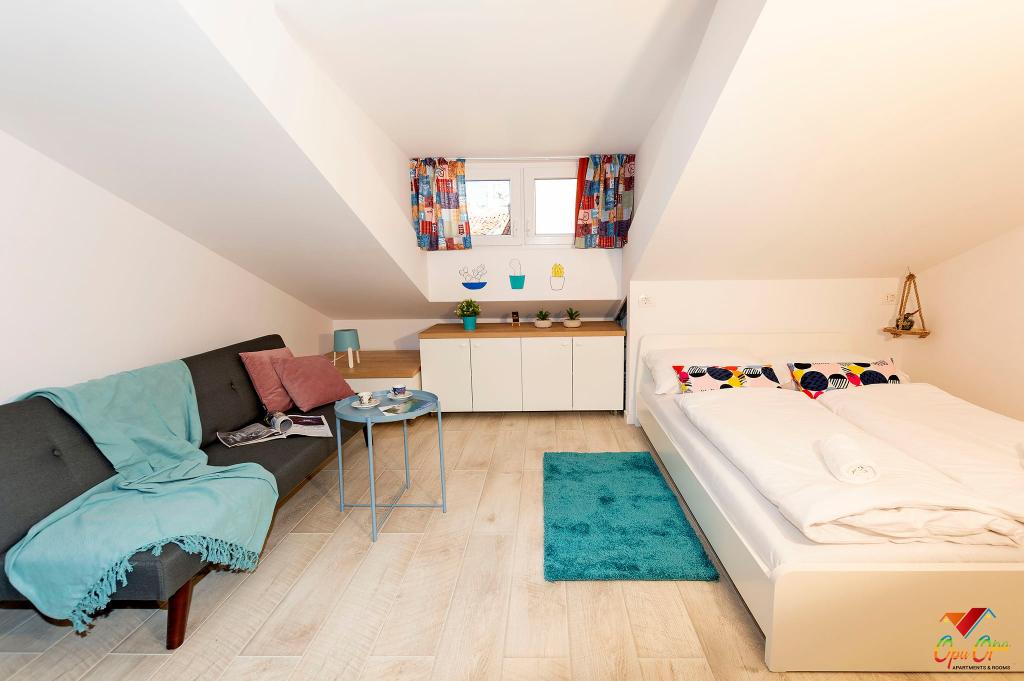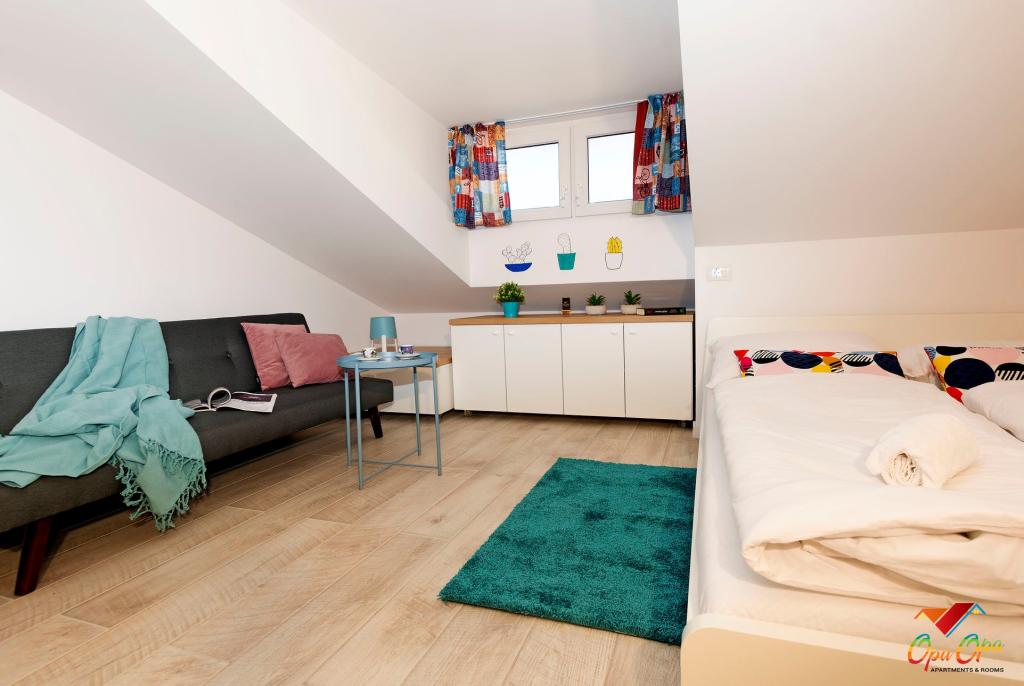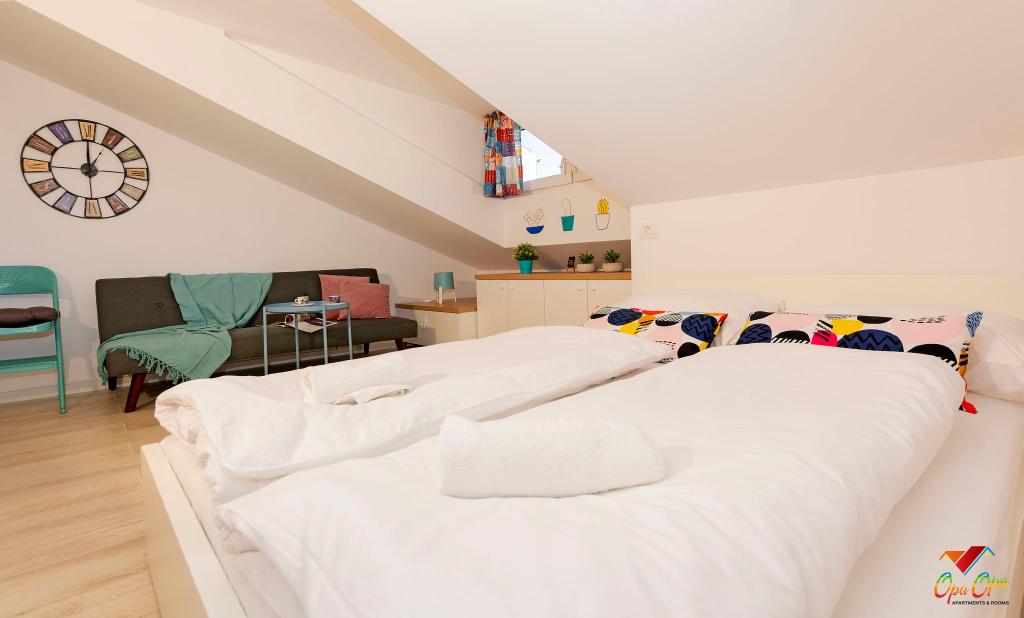 Apartment Opa Gold is located in the city center, next to the main promenade 'Korzo', a few steps from the sea and the city market. 1 minute walk from the Croatian National Theater Ivan Zajc and 300 m from the Maritime and Historical Museum of the Croatian Coast. Opa Gold is a fully equipped spacious apartment, size 50m2. It consists of two rooms with a living room, a kitchen, a dining room and a modern bathroom with a shower, a washing machine and a clothes dryer, and a hair dryer. The kitchen is equipped with all the most modern built-in appliances, oven, microwave, stove, dishwasher. The beds have mattresses with 7-zone pocket cores complete with anatomical pillows, also with antibacterial covers. In the immediate vicinity of the apartment there are numerous restaurants, coffee bars, shops, the City Library, a pharmacy, and other necessary amenities.